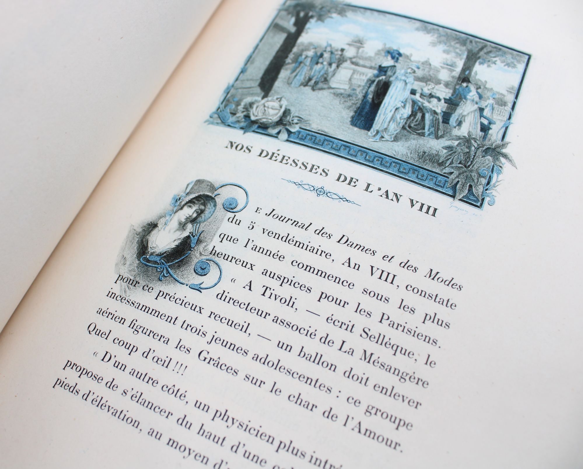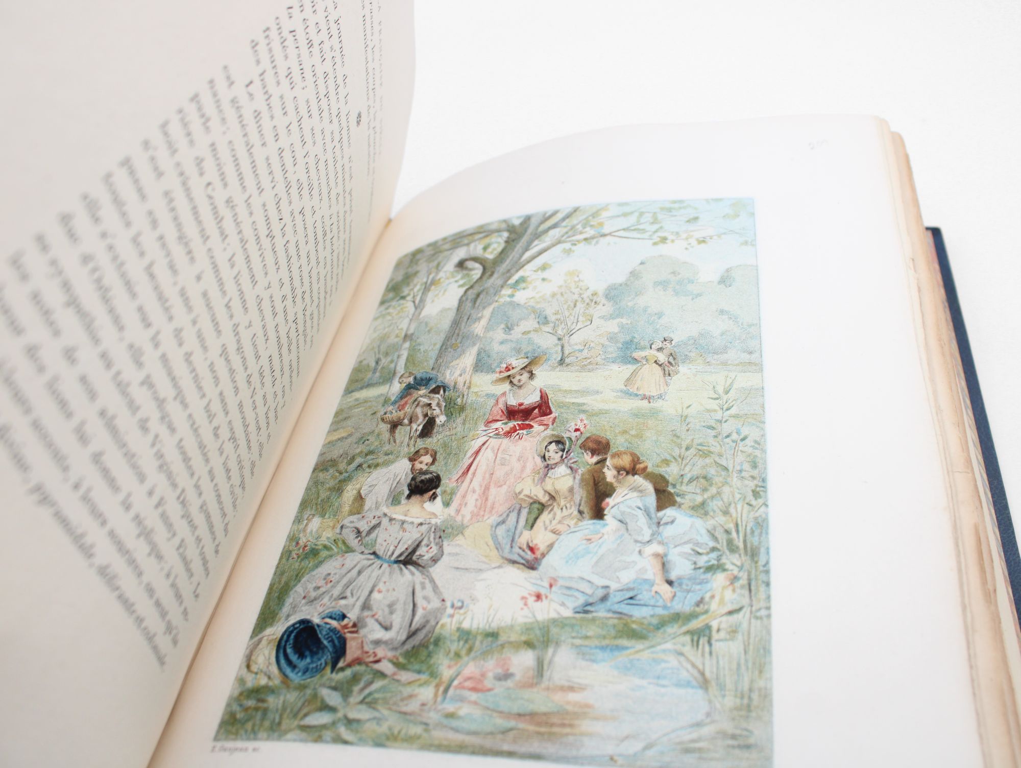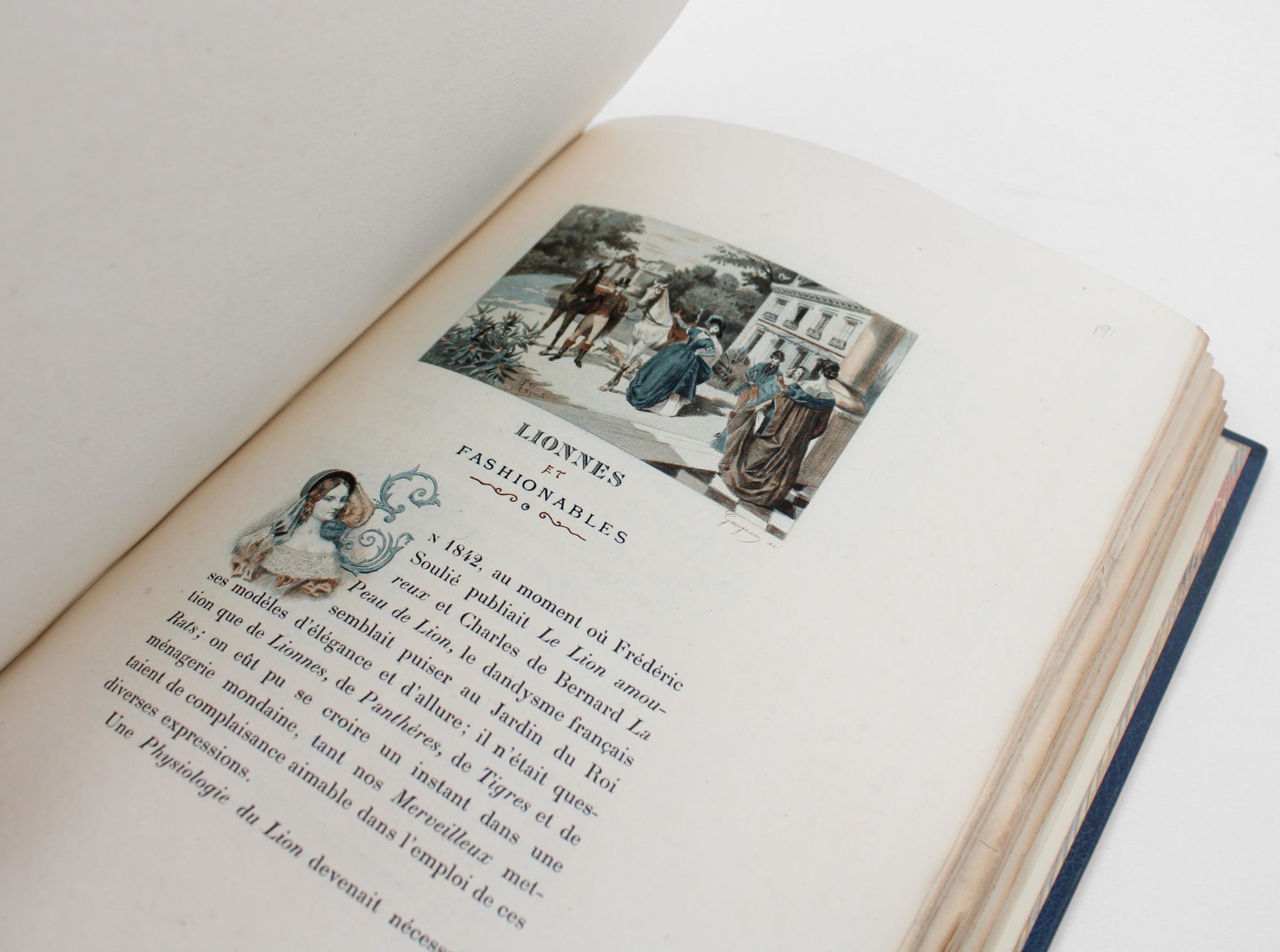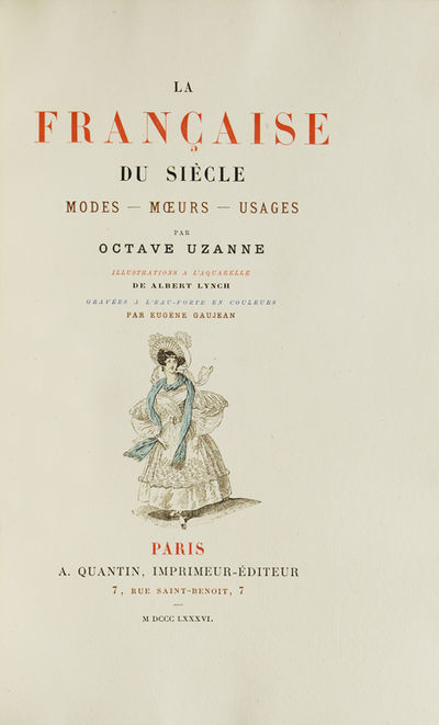 Paris: A. Quantin, 1886. First edition. Aquarelles de Albert Lynch gravées à l'eau-forte en couleurs par Eugène Gaujean. xvi, 273, [3] pp. 1 vols. 4to. Recent full blue morocco with maroon green and yellow onlays of umbrella, fan, and book on upper covers, red morocco title label. In cloth drop box. Fine. First edition. Aquarelles de Albert Lynch gravées à l'eau-forte en couleurs par Eugène Gaujean. xvi, 273, [3] pp. 1 vols. 4to. Carteret IV 384; Colas 2948; Vicaire VII 924