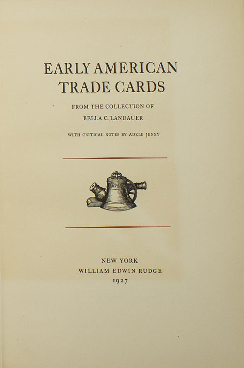Early American Trade Cards from the Collection of Bella C. Landauer, [at the New York Historical Society.] [Preface by Bella C. Landauer.]