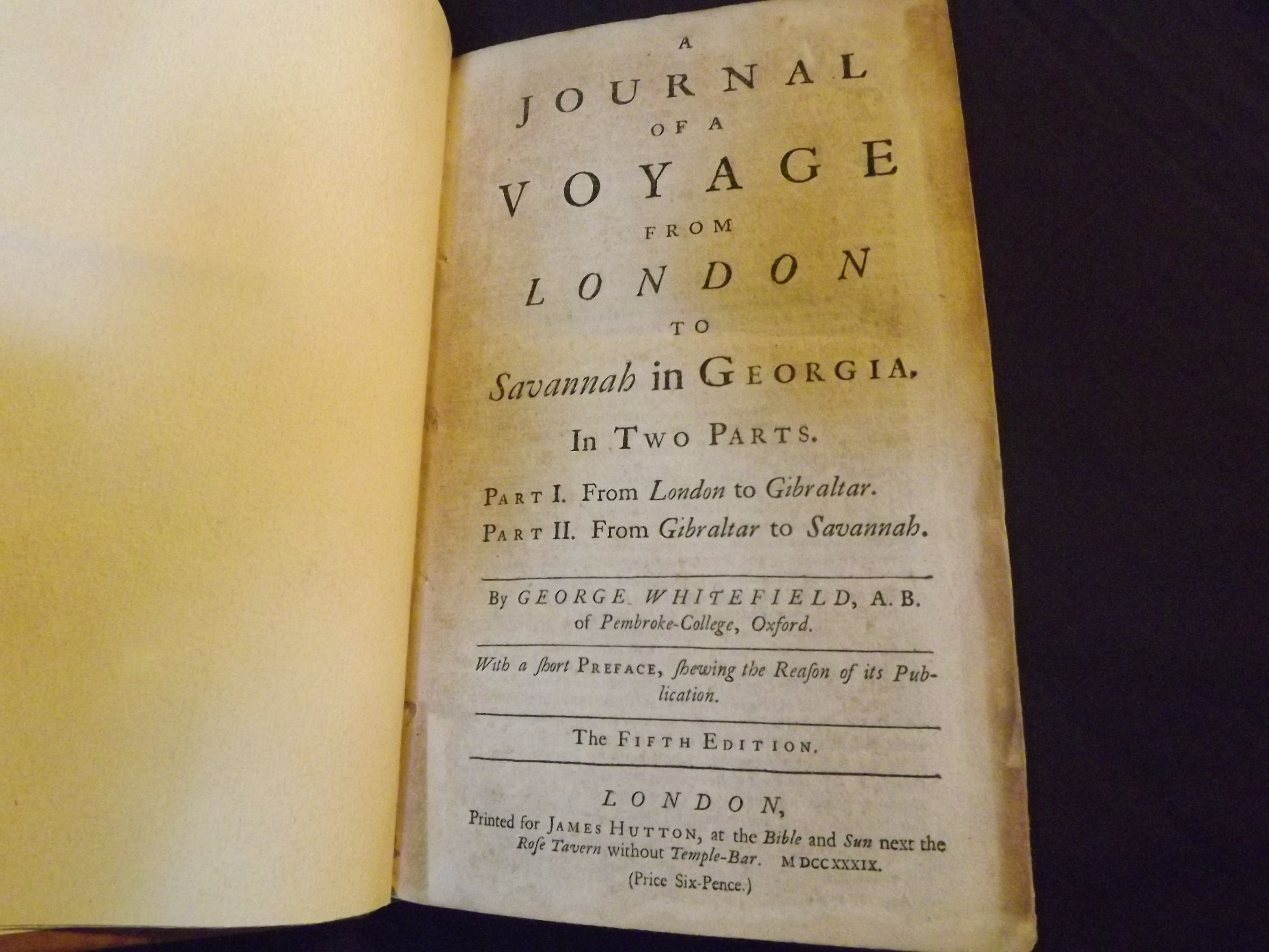 A Journal of a Voyage from London to Savannah Georgia in Two Parts… The Fifth Edition. Bound with. A Continuation… From his Arrival at Savannah, To his Return to London. The Second Edition. Also bound with. A Continuation… From his Arrival in London, to His Departure from thence on his Way to Georgia. The Second Edition