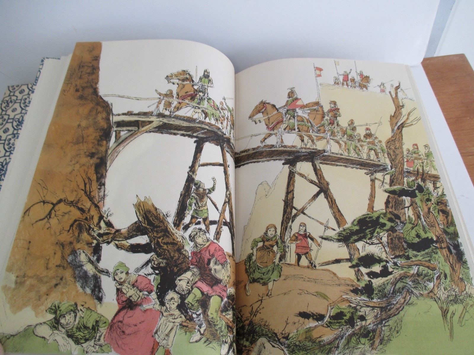 New York: Limited Editions Club, 1959. Hardcover. Spine a little sunned. Close to Fine in a Fine slipcase. Henry C. Pitz. Large octavo (7-1/4" x 11") bound in buckram with the side-strips bearing an all-over pattern of escutcheons, the center strip stamped in gold with a large escutcheon quartered in red and blue containing the title, and flanked by groups of lances; 748 pages. Translation of Lord Berners edited by G. C. Macaulay with an introduction by Dr. Sidney Painter of this account of the first half of The Hundred Years War. Two-page spread illustrations by Henry C. Pitz hand-colored through stencils at the Walter Fischer Studio. Copy #39 of 1500 SIGNED by the artist on the colophon page. Handsome edition of this classic.