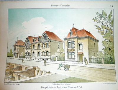 Arbeiter-Wuhnungen: Einzelhauser fur eine Familie und Doppelhauser fur zwei und vier Familien in farbiger Darstellung; Privat-und Gemeindebauten. [Private and Community Buildings]. Serie IV