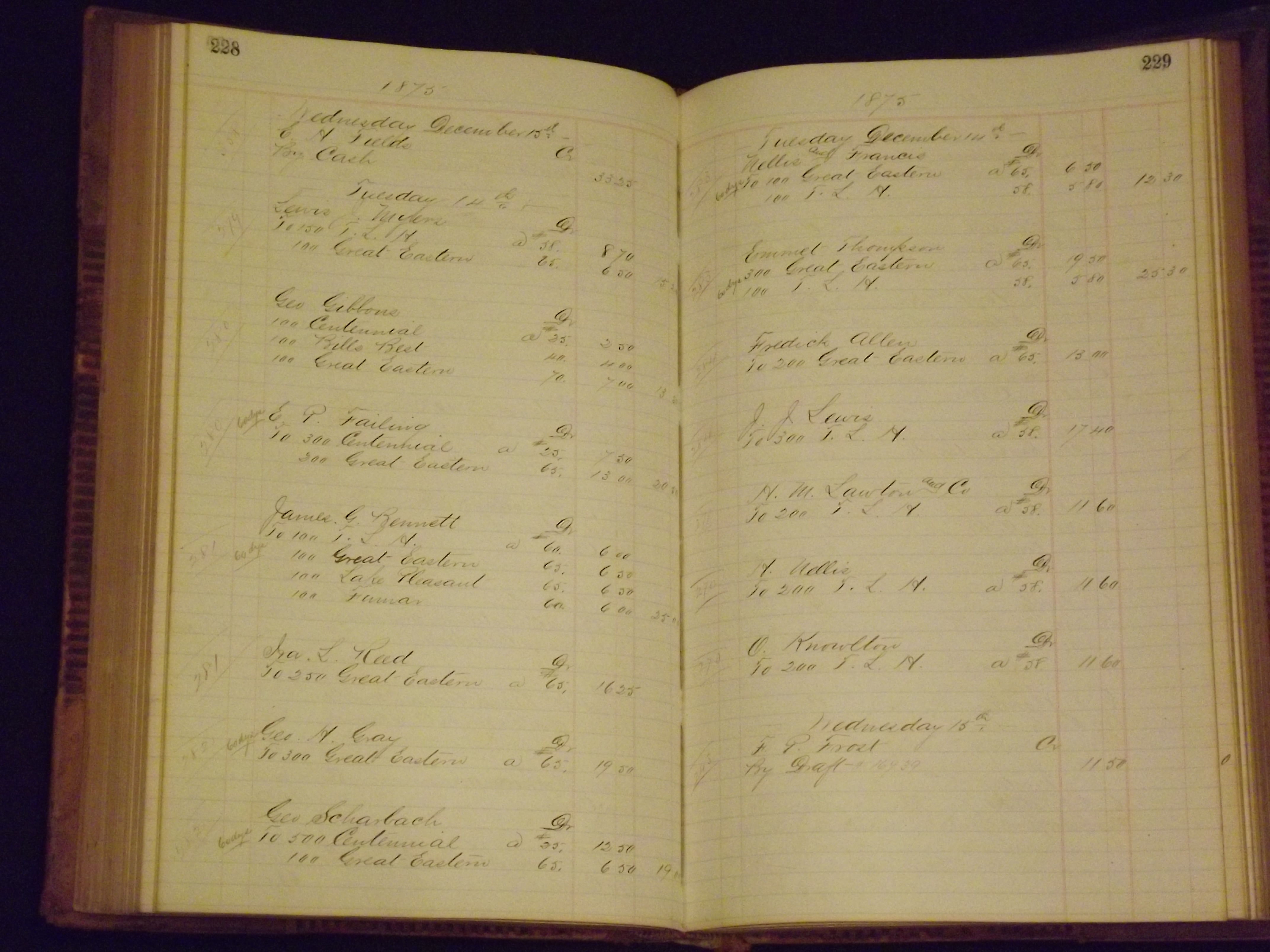Folio, contemporary reverse leather, MCMCA etched or printed on front panel, 431 pp. Binding shows some wear and scuffing, especially at the edges and spine, a couple of tears at the spine, a small piece missing at the bottom of spine, internally reinforced hinges; internally in excellent condition. A great record of a cigar manufacturer and distributor probably located in New England. The name of the firm appears to be "M.C.M.C.A." or"M.C.M." This was a large scale operation involved not only in making its own cigars (a variety of "MCM" brands), but also in distributing a great many brands for other makers, including Little Sweet Hearts, Smuggler, Concordia, Pantilla, Big Bonanza, and Henry Clay. The firm also purchased and sold tobacco leaf. The account includes regular entries for six individual cigar makers, a foreman, and an agent, with their wages and commissions, and an occasional record of shares of company stock sold to them. This is a fine voluminous account book highlighting an interesting and unusual business.