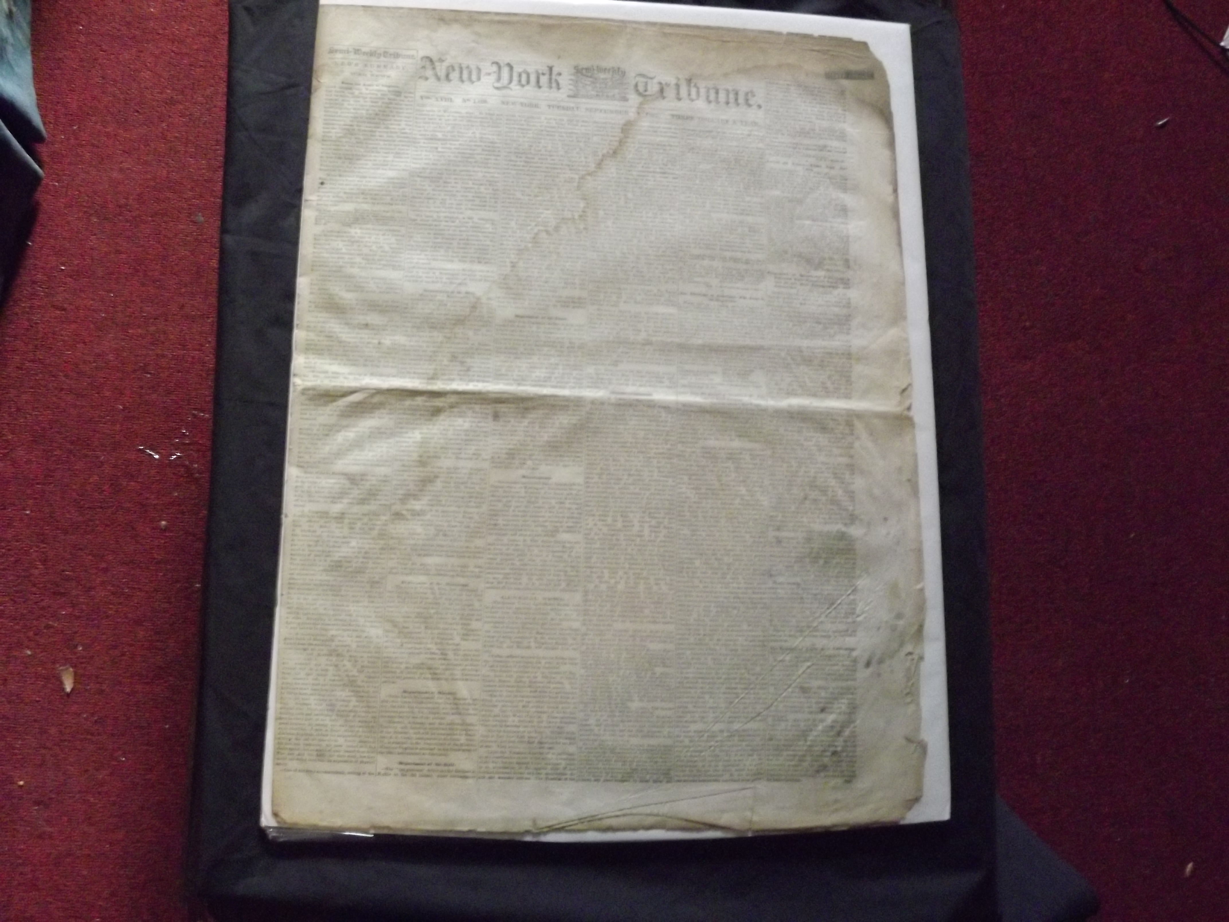 Newspaper, folio, unbound, 8pp. Dampstained, browned at edges with some foxing, early owner's ink stamp on top margin, some small tears and chips along edges, and a little creasing. Still in decent shape overall. This is one of the earliest printings of the Emancipation Proclamation, which was issued on September 22, 1862. The Emancipation Proclamation declared freedom for all slaves in any Confederate state that didn't return to the Union by January 1, 1863. Although this executive order did not actually free a large number of slaves, it set the stage for the freedom of all slaves. Coverage of the Emancipation in this newspaper begins in the middle of the first page. This newspaper article represents important coverage of a very significant event in American History. archives government exhibits emancipation website