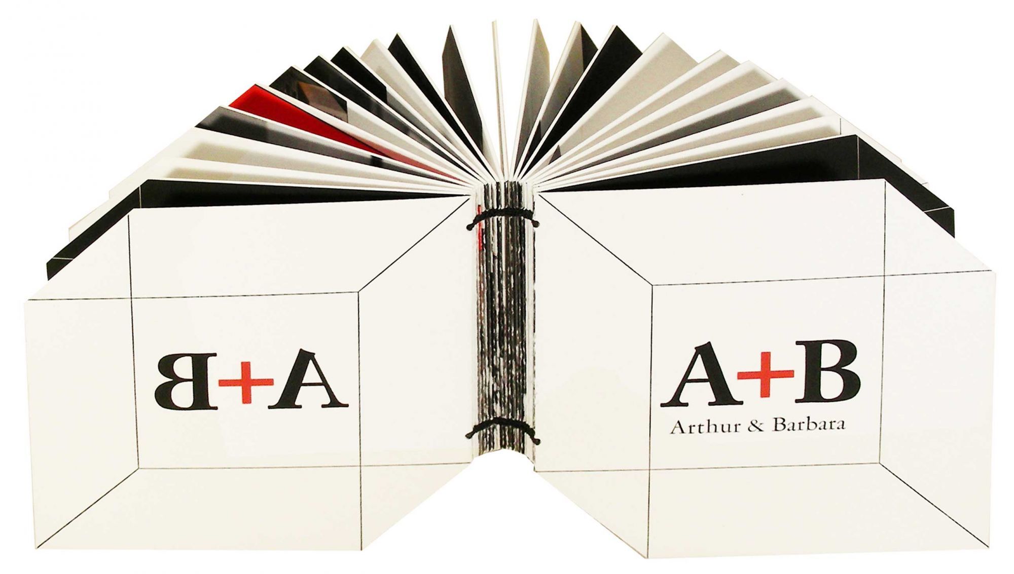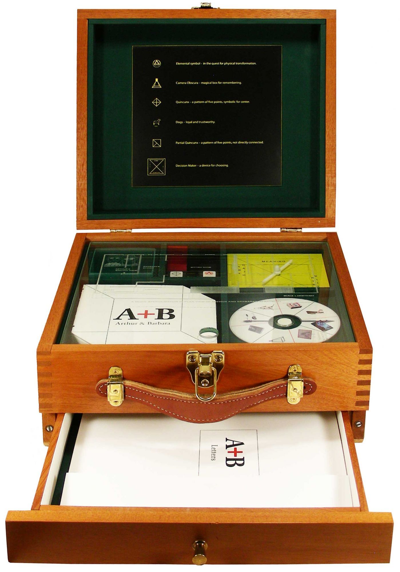 Minneapolis: Indulgence Press, 2011. Fine. One of 20 copies. Arthur & Barbara is a portrait of art critic/philosopher Arthur Danto and artist Barbara Westman as seen reflected in the space of their New York City apartment on Riverside Drive. This book embodies their life and work in symbolic forms of thoughtful play. Arthur & Barbara is a collection of simple objects, images and “games” referring to both Duchamp’s Boîte-en-valise and to Fluxus Collections. The box contains laser-etched glass with a plan view of the apartment. Beneath the glass, separated spaces hold a DVD with images of Arthur, Barbara and their apartment, a hand-bound codex filled with photographic illustrations and brief text, a glass block laser-etched with an illustration by Barbara Westman, two chairs, handmade dice, and a spinner. A drawer holds a folio of letters written by Sean Scully, Shirin Neshat and Barbara Westman, and an introduction by David Carrier. A fascinating way of documenting the lives and personalities of this interesting couple. In fine condition. Size: 13 x 12 x 7 inches. PRI/041111.