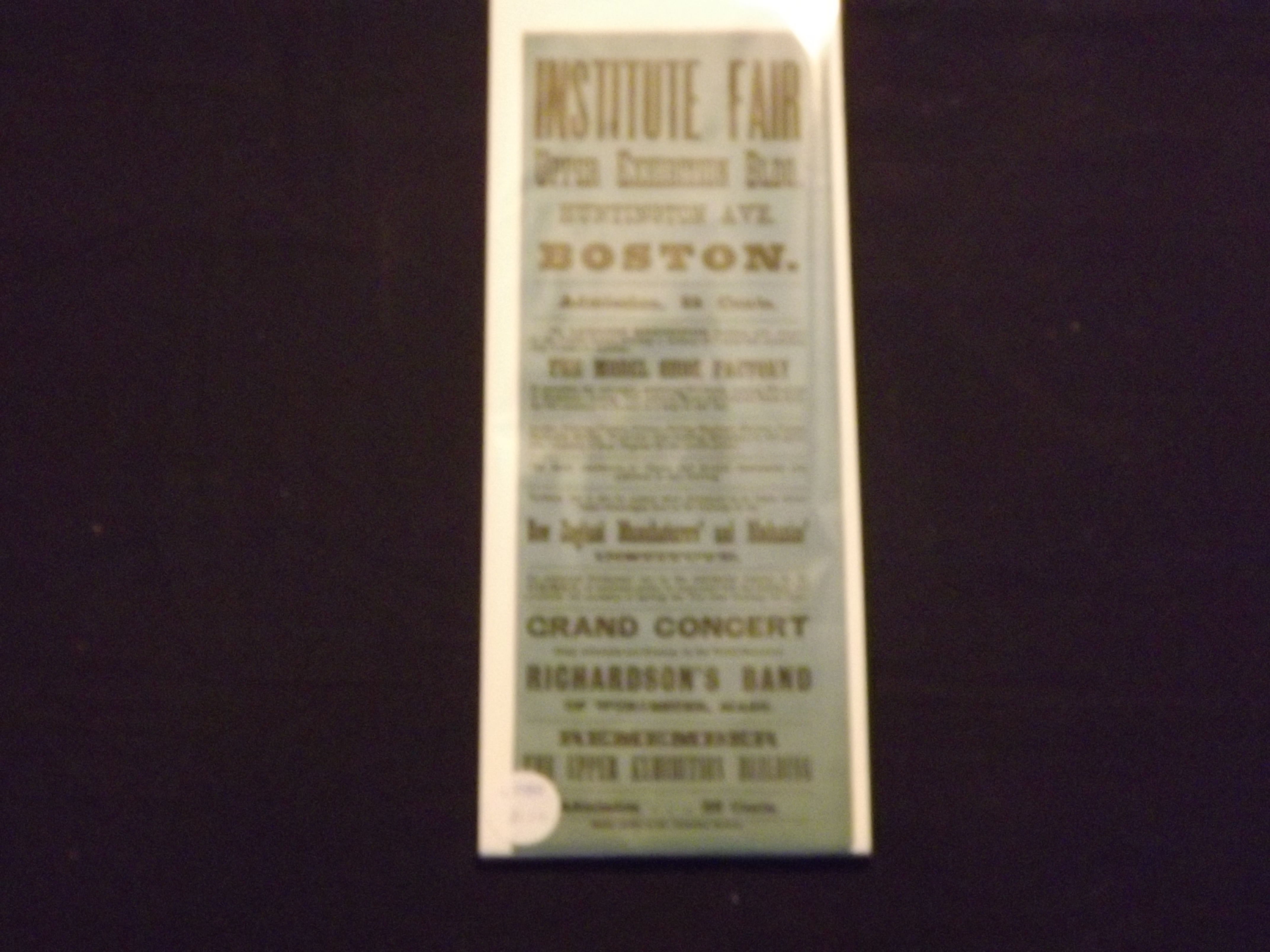 Small broadside, 12 3/4x4 3/4, printed on blue paper. Short tear at edges; near fine. This little broadside is like the 'Industrial Revolution R US'. Exhibits inculded looms, a printing press, sewing-machines, hydraulic motors and a model shoe factory, which produced 1200 pairs of shoes daily.