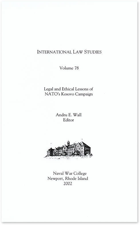 2002. International Law Studies Vol. 78. 2002. International Law Studies Vol. 78. 2002. Wall, Andru E., Editor. Legal and Ethical Lessons of NATO's Kosovo Campaign. International Law Studies. Volume 78. Newport, Rhode Island: Naval War College, 2002. xxx, 571 pp. Hardcover. Fine. $35.
