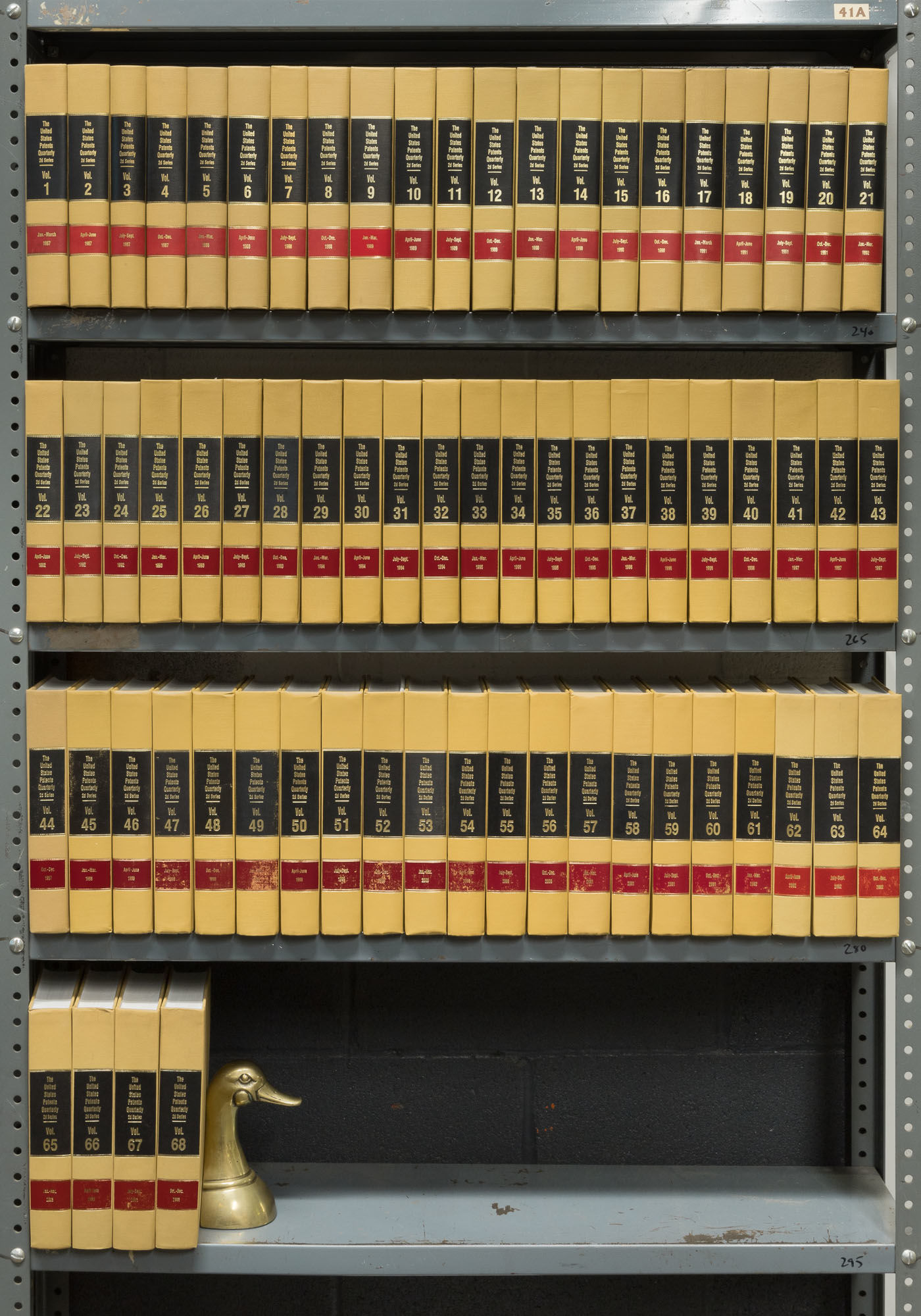 2003. United States Patents Quarterly 2d. Volumes 1 to 68 (1987-2003). Washington, D.C.: Bureau of National Affairs. Ex-private law library without stamps or labels. Very good condition. Special $695. * Premier research tool on Intellectual Property law and indispensable in a patent library. Unique in that it prints many "manuscript" decisions which are nowhere else published. These Patent Office decisions are not printed in the Commissioner's decisions, but are often referred to by the examiners.