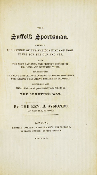 The Suffolk Sportsman : Shewing the nature of the various kinds of dogs in use for the gun and net, with the most rational and perfect method of training and breaking them together with ... instructions to young sportsmen ... Containing also other matters of great nicety and utility in the Sporting way