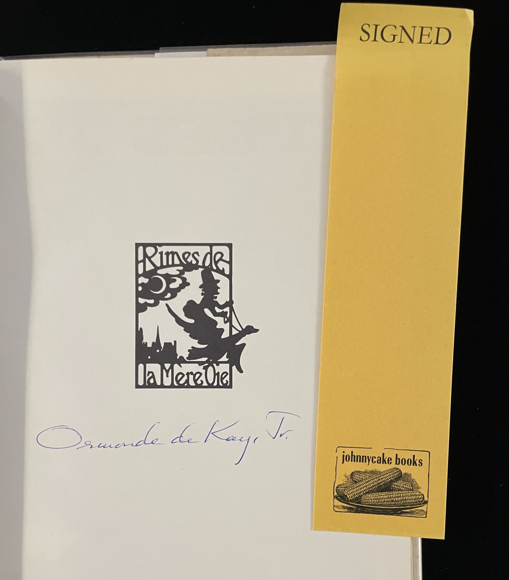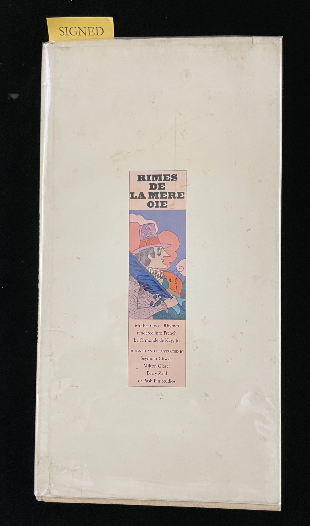 Boston: Little Brown, 1971. First Edition. Hardcover. VG/VG-. Uncommon English to French translation of Mother Goose rhymes, with an introductory essay by de Kay, book designed by Chwast, Glaser and Zaid of Push Pin Studios, cutting edge, Manhattan graphic design firm of the 60s/70s. Signed by translator de Kay on the half title. Book better than very good - just a little dusty at top edge and spine a wee cocked. The dustjacket has some surface soiling and a few closed tears about the edges. Still, very presentable.
