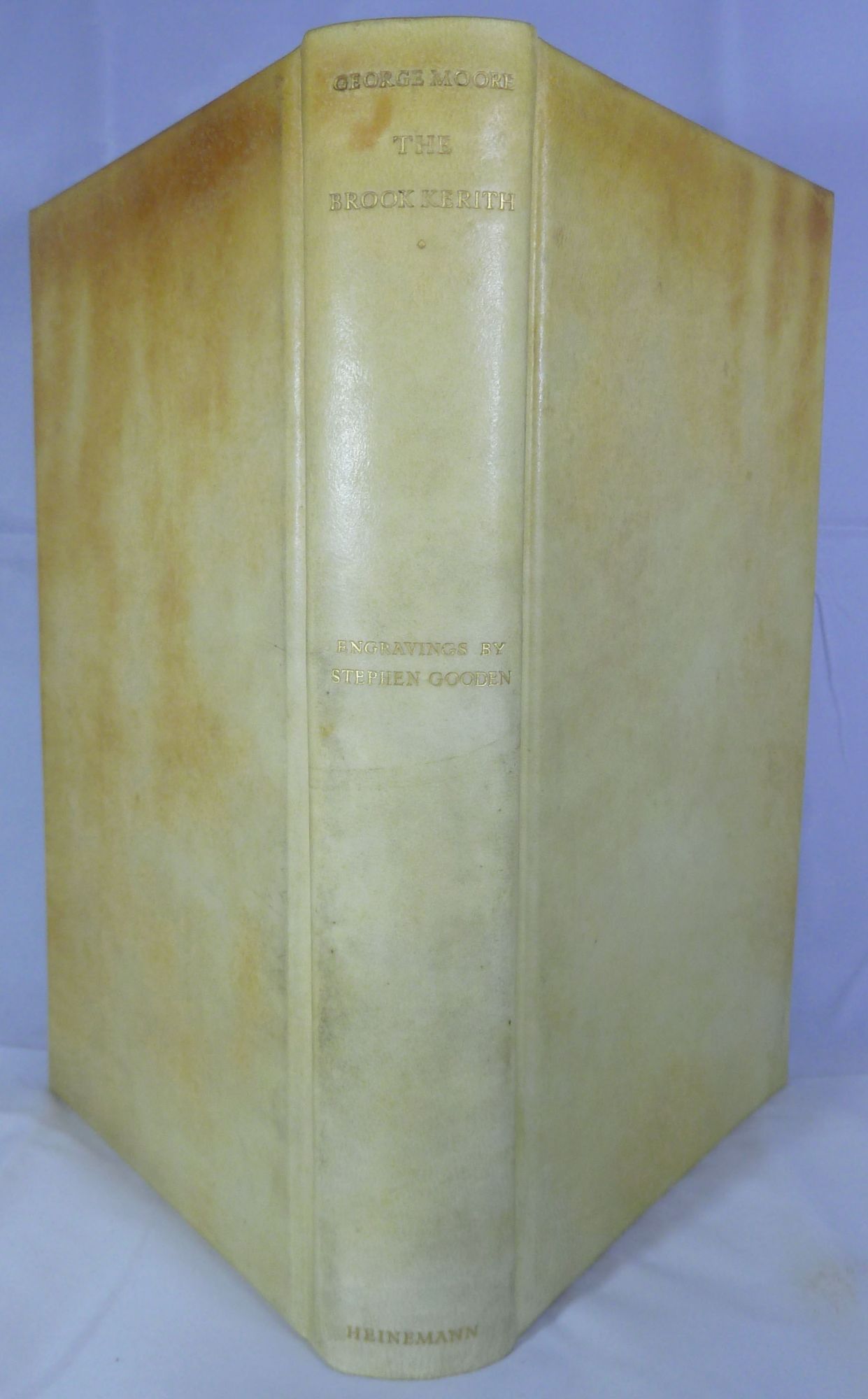 London: William Heinemann, 1929. Hardcover. Orig. full vellum, beveled edges. Very good. Gooden, Stephen. 360 pages. 26 x 17.5 cm. Limited edition, copy 17 of 375 copies signed by George Moore and Stephen Gooden printed on hand-made paper from hand-set type. 12 engravings by Gooden with tissue guards. Partly unopened, a bright very clean copy save for toning front and back covers.