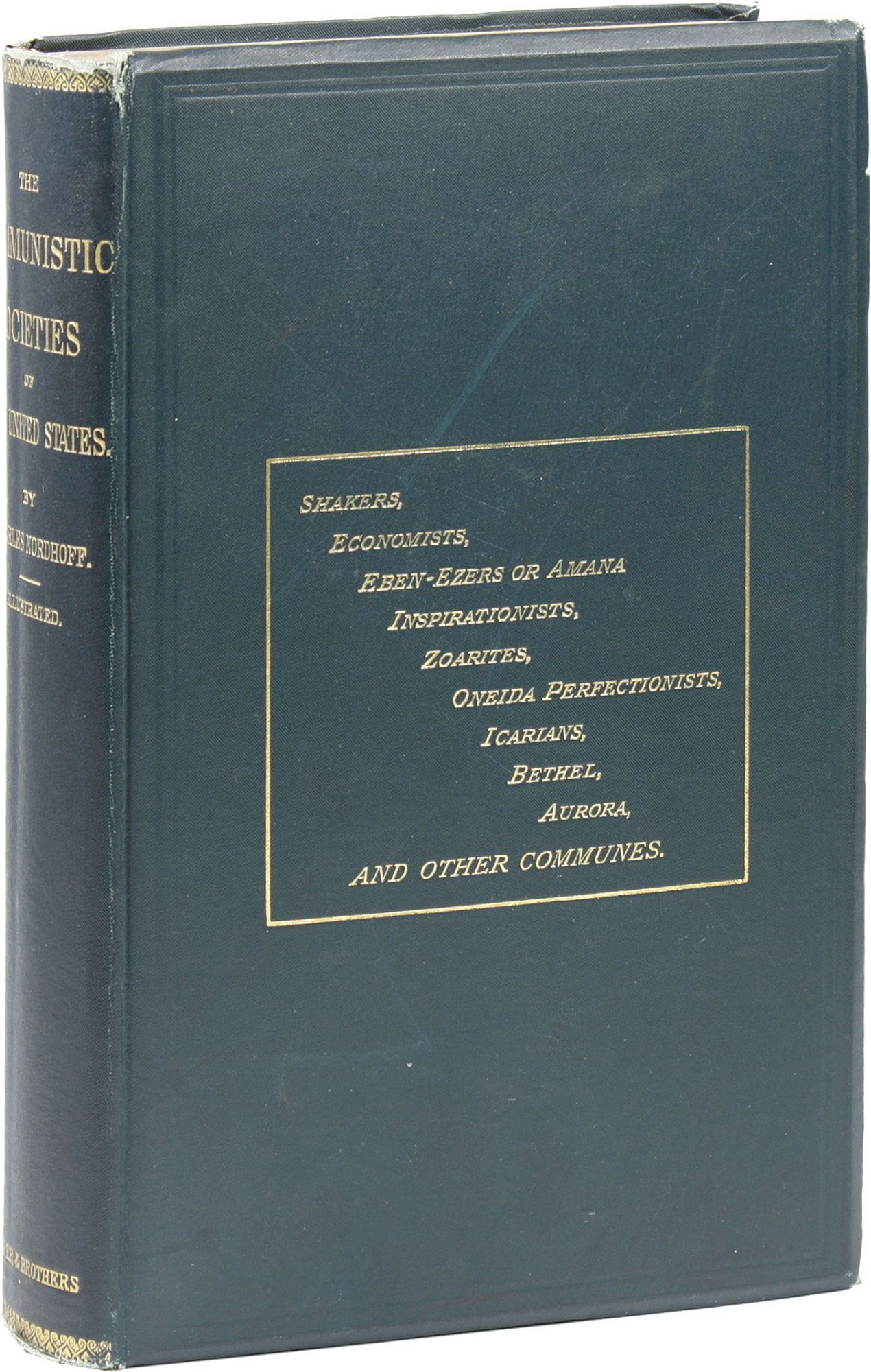 Nordhoff’s survey of utopian communities, based entirely on personal visits, remains the most reliable and thorough examination by a contemporary observer, providing detailed and generally sympathetic descriptions of life at Bethel, Aurora, Icaria, Amana, Oneida, Zoar, and the various Shaker communities. This copy with the bookplate of American clergyman & writer Frederic Rowland Marvin (1847-1918), author of several undistinguished volumes of essays and verse. MILLER 138. DARE 143. HOWES N177.
