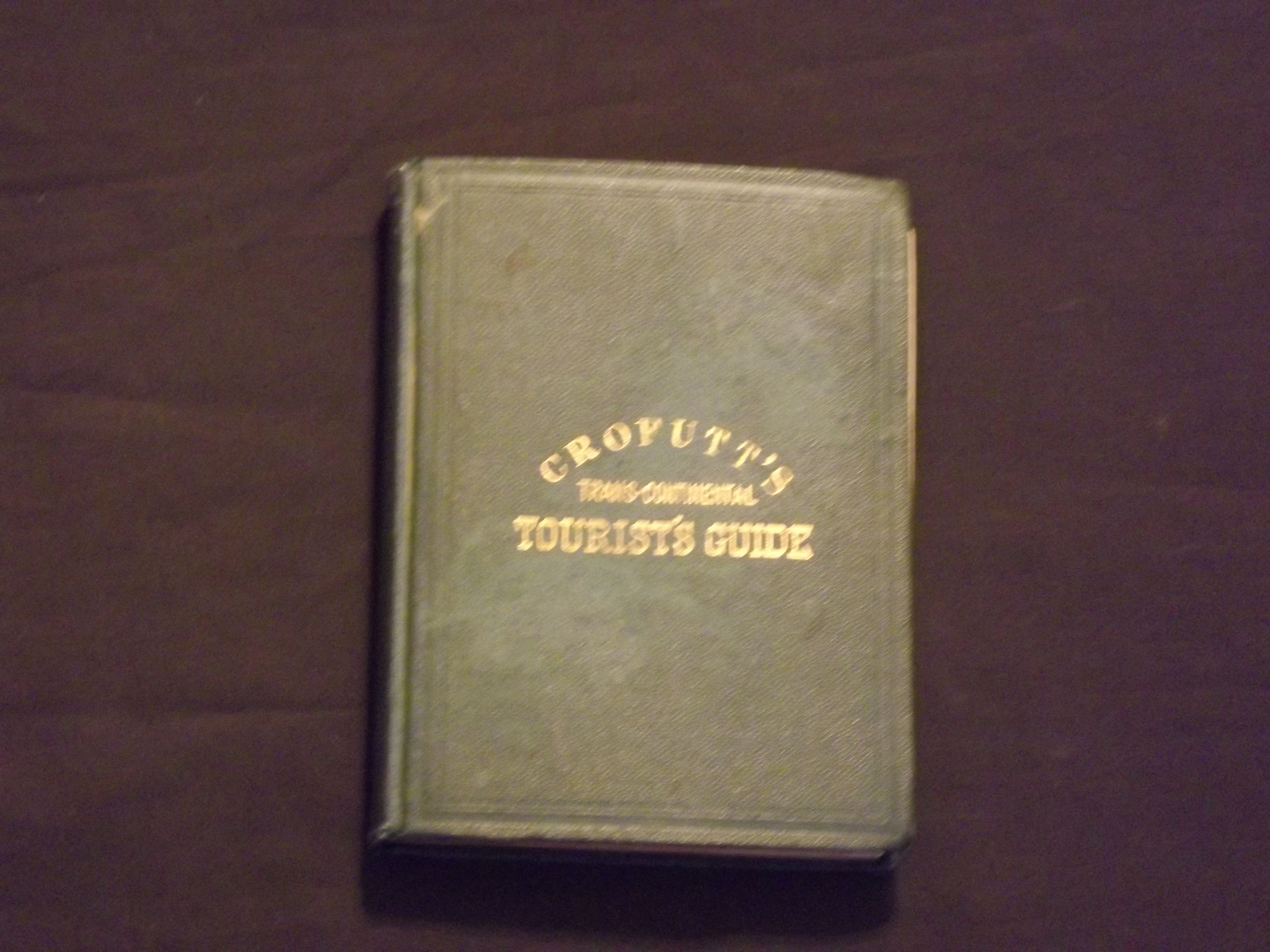 Square 8vo, original gilt lettered cloth, illustrated, 224 pp. Mild wear to binding, rubber stamp on endpaper, appears top of front blue endpaper is missing, large folding map of the world with some splits at the fold, especially at the first panel, which is significant, Yellowstone map with a tear in the left side, normal aging and toning; very nice copy overall. This is essentially a railroad guide loaded with information. It contains rail and stage schedules and routes, including a large folding Union Pacific Railroad schedule. In addition to a large folding colored map of the world, this guide contains folding maps of Salt Lake City, Yellowstone National Park and Omaha and Council Bluffs. There are over twenty full page engravings of views of America, including the Great Plains, Sierra Nevada Mountains, Donner Lake, mining activities in the west, and the meeting of the eastern and western railroads. Howes C901.
