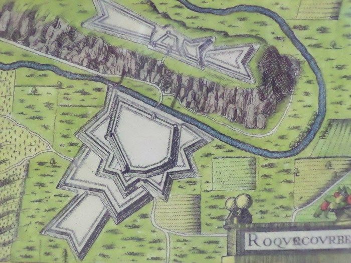 Hand Colored 1636 Print, Map of Roquecourbe, from 'Les plans et profils de toutes les principales villes et lieux considerables de France