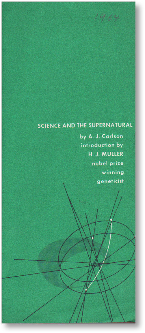Yellow Springs, OH: The American Humanist Assoc, 1964. Reprint. Tall, narrow octavo (21.5cm). Green pictorial wrappers, 16pp. Small closed tear to edge of front cover; bump to lower page edges. "The Truth Seeker" stamp to rear cover. Very Good. Reprint of the 1931 William Vaughn Moody Lecture at the University of Chicago first delivered by Humanist of the Year awardee, Anton J. Carlson. With an introduction by another awardee of the same title, Hermann J. Muller. Only two copies located via OCLC.