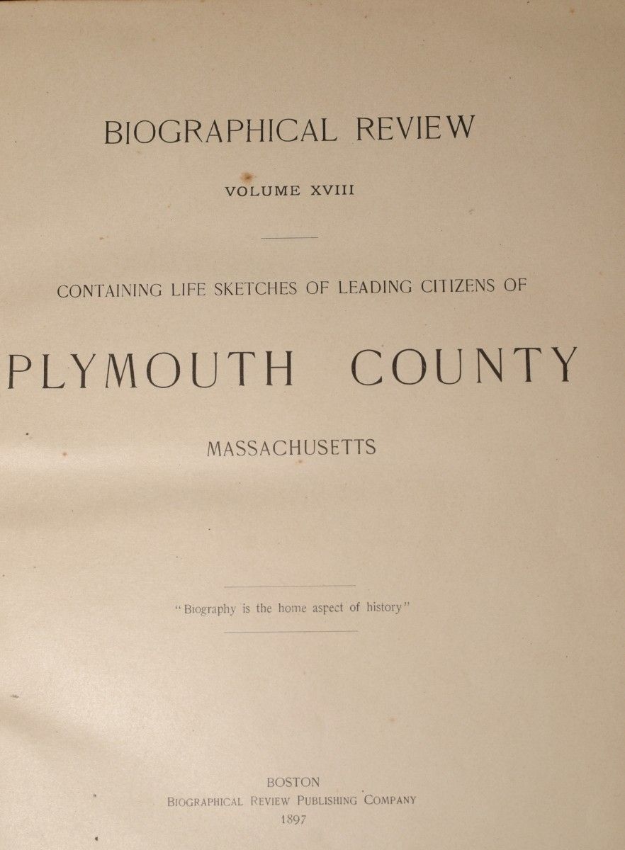 BIOGRAPHICAL REVIEW: Volume XVIII - Containing Life Sketches of Leading Citizens of PLYMOUTH COUNTY Massachusetts