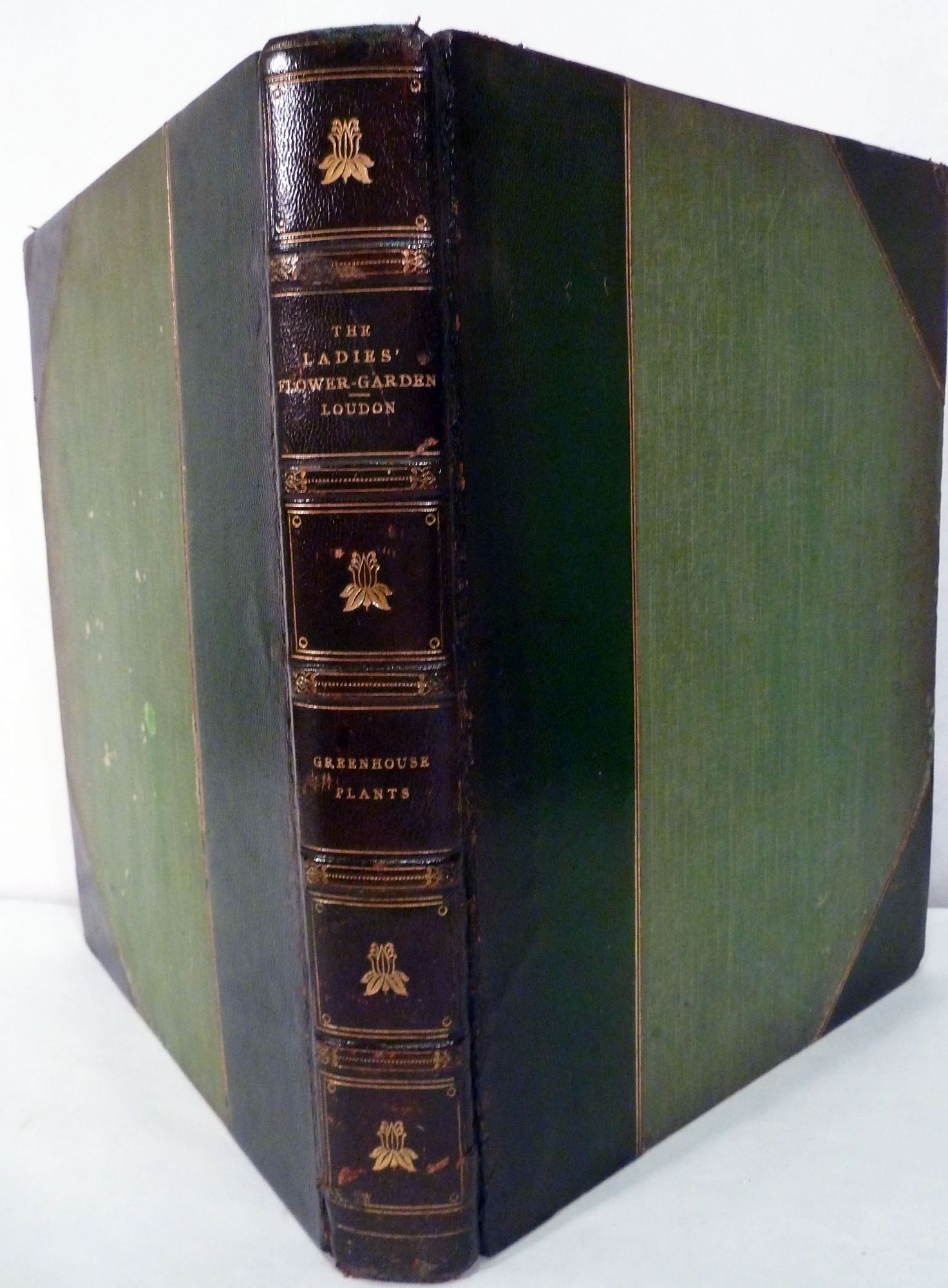 London: William S. Orr & Co, 1849. Second edition. Hardcover. Three quarter green morocco and green cloth. Teg. Very good. 215 pages. 30 x 25 cm. Forty-two lithographic plates printed in colors and finished by hand, tissue guards. With no entry level manuals for gardening available in her day, she pioneered gardening as a suitable occupation for women. Her husband -- John C. Loudon, a prolific horticultural and landscape design writer founded the "Gardener's Magazine," the first periodical devoted solely to horticulture -- influenced her as did John Lindley, whose lectures she attended. Prior to her marriage her fiction writing, "The Mummy," an early science fiction novel, adumbrated perhaps by Mary Shelley's "Frankenstein," and published anonymously in 1827 by Henry Colburn, received favorable reviews. NISSEN 1236 [1848 edition]. Plates generally clean, a few minor age spots to first few plates at upper margins not affecting images, raised bands, gilt decorated spine panels, joints and extremities rubbed.