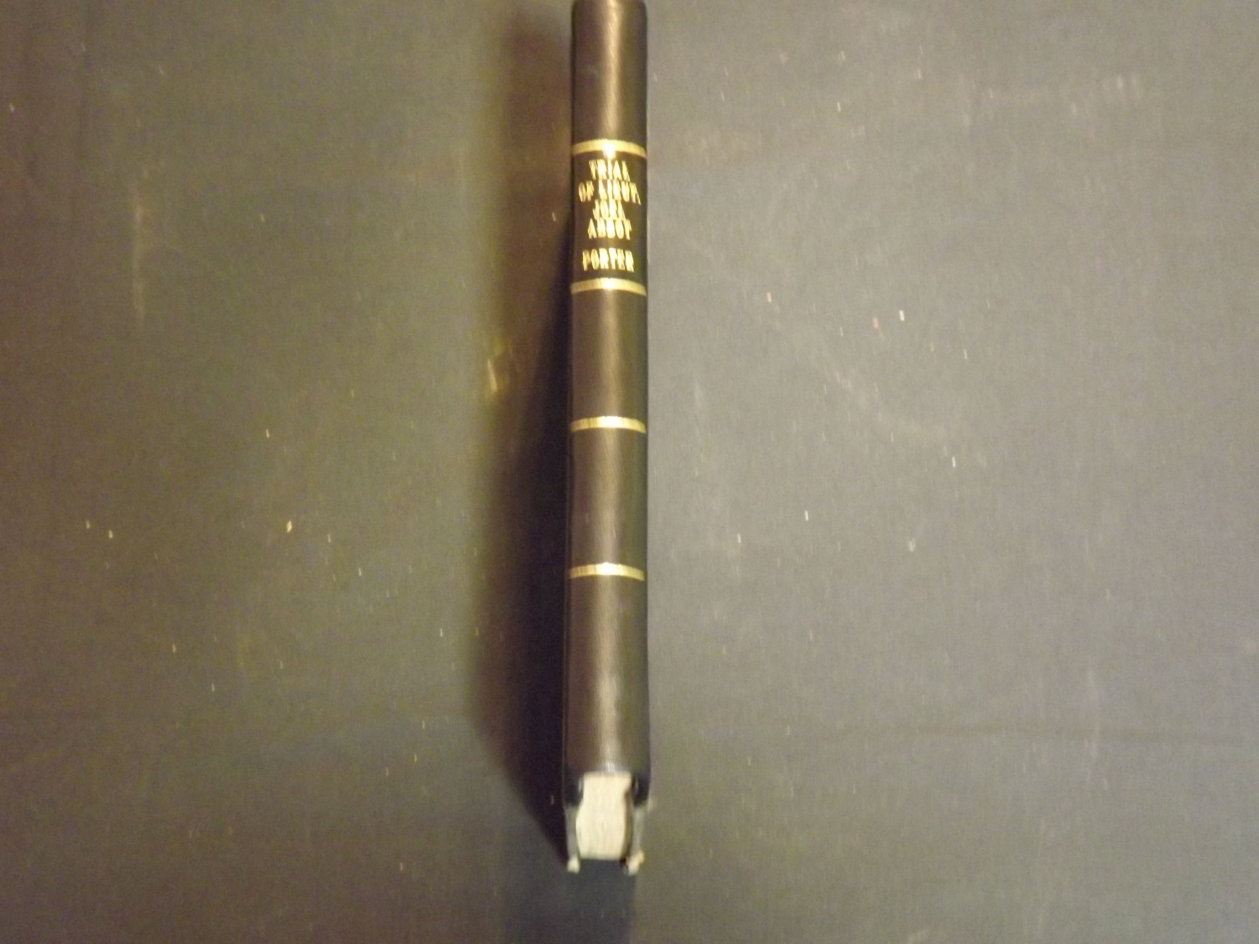 8vo, old pebbled cloth with leather corners, spine lettered in gilt with modern morocco, 164, 72, [1] pp. Corners scuffed, some light foxing, removed library plate, top hinge starting, but still firm, pencil note on title, old number on back of title; else very good. In this significant American legal case, Lt. Joel Abbot, stationed at the Charlestown Navy Yard, accused Capt. Isaac Hull (1773-1843), who commanded the U.S.S. Constitution during the War of 1812, of fraud against the U.S. government. Captain David Porter (1780-1843) investigated the charges, realized that Hull was innocent, and in April 1822 turned around and charged Abbot with libel. Specifically, he was accused of "attempting to take from his superior officer, Capt. Isaac Hull, his good name." Abbot was found guilty and removed from service for two years, and then resumed a somewhat successful naval career, rising to the rank of captain. This work contains a good deal of legal correspondence and questioning. Interestingly, in coverage of Capt. Porter and Capt. Hull in the ANB there does not appear to be any mention of this case in their write-ups. Sabin 96807. ANB.