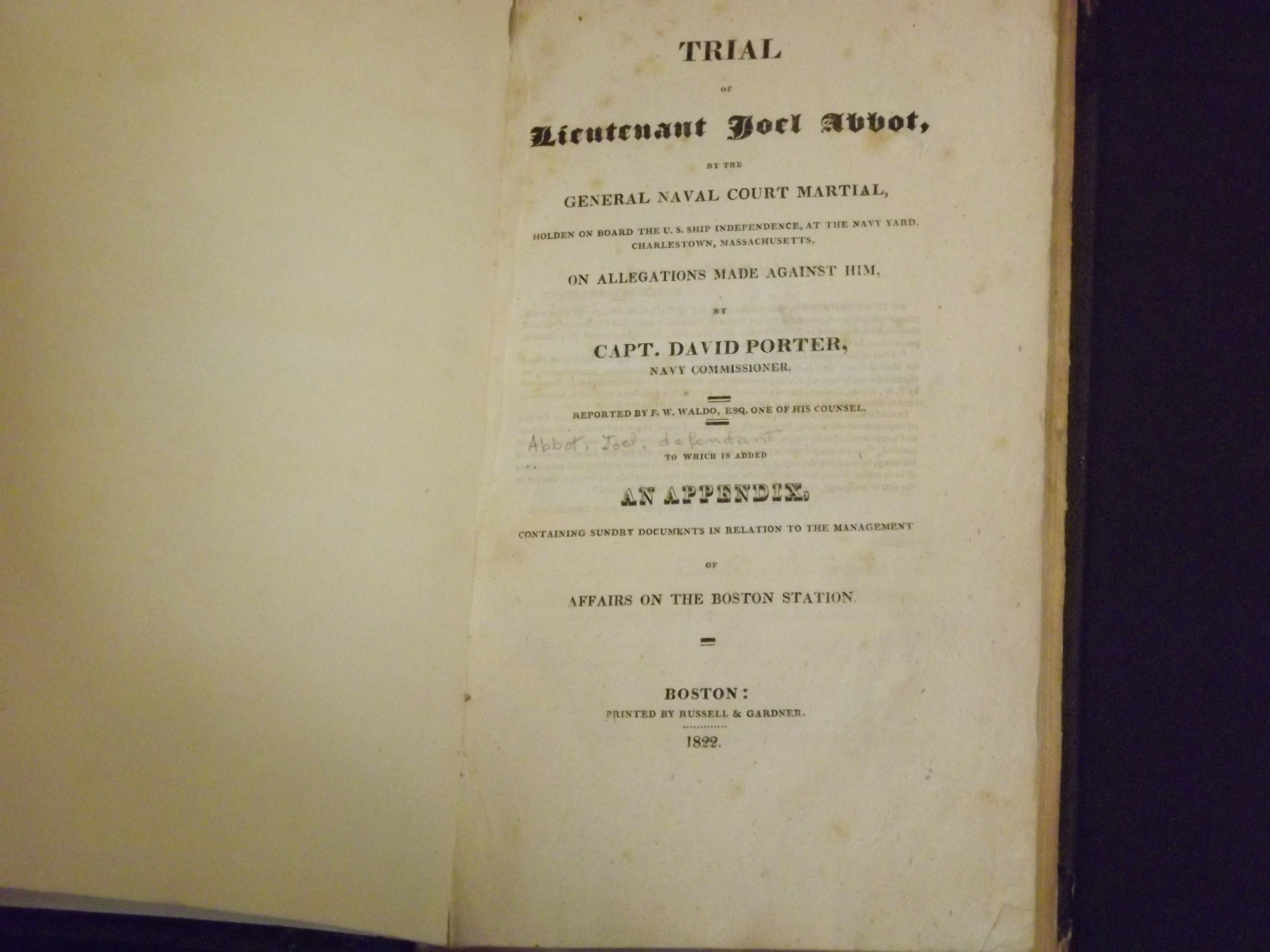 Trial of Lieutenant Joel Abbot by the General Naval Court Martial, Holden on Board the U.S. Ship Independence, at the Navy Yard, Charlestown, Massachusetts, on Allegations Made Against Him by Capt. David Porter, Navy Commissioner…