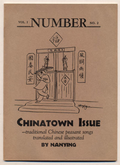 San Francisco: Wobber Brothers, 1950. Original printing. Paperback. Very good. 31pp. Thin duodecimo [19 cm] Saddle-stitched printed wraps. A Quarterly of Modern Poetry. Chinatown Issue. Traditional Chinese peasant songs translated and illustrated by Nanying.