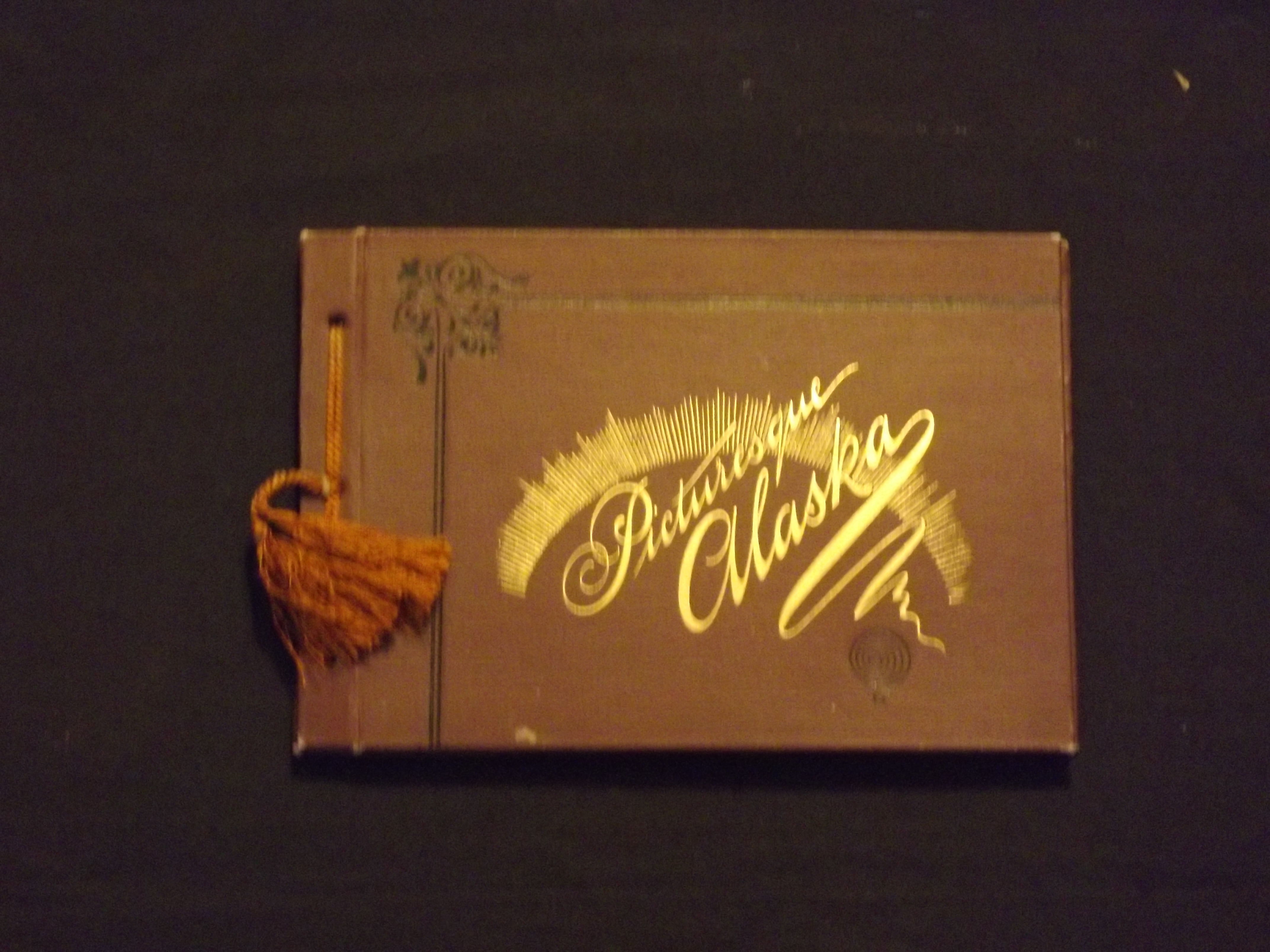 Unusual souvenir book of Alaska, with only a couple of pages of text, but 12 pages of photos. The text provides a short history of Alaska, including a view of some of its resources, and a brief description of native inhabitants. The plates illustrate some of Alaska's natural beauty, and activities of some of the native people.