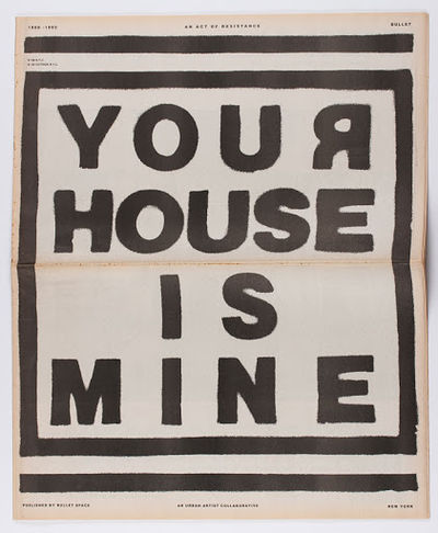 "This project is a collection of images and texts concerning the broad and essential issue of housing on the Lower East Side [of Manhattan]." It presents a series of posters created to bring attention to New York City's campaign of condemning entire blocks of decent low-income housing in order to demolish them and build more taxable high-rise housing. It is a document of an impressive and provocative public art project featuring some of the most well-known artists of this activist art movement centering on housing, economics, healthcare, gay and lesbian and other civil rights...and of the American art world of the time. Many of the artists have become well-known in recent years, with their works represented in collections at the Museum of Modern Art, the Metropolitan Museum of Art, the Whitney Museum of American Art, the Museum of the City of New York, El Museo del Barrio, the Brooklyn Museum, etc. Several artist included have emerged as major figures in the Graffiti Art Movement. Several are now faculty at prestigious colleges.