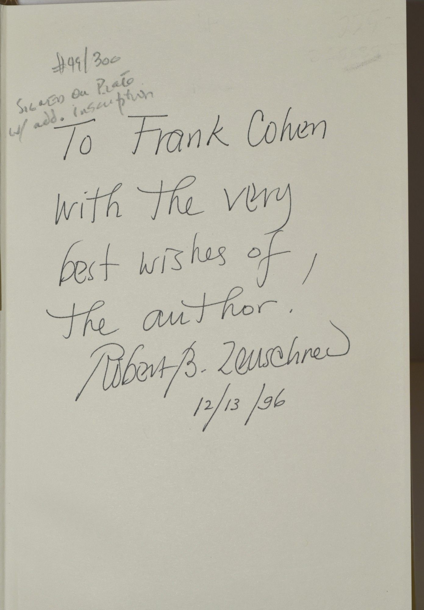 Jefferson NC: McFarland & Co, 1996. Hard Cover. Very Good+ binding/Very Good+ dust jacket. Signed by Zeuschner on bookplate and on front endpaper with added inscription. No markings of any kind; dust jacket protected in a mylar cover. Very Good+ binding / Very Good+ dust jacket.