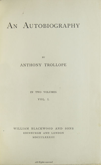 Edinburgh and London: William Blackwood and Sons, 1883. First edition, with half-titles. Frontispiece portait. xiv, 259, [1]; vi, 227 pp. 2 vols. 8vo. Bound in three quarters blue morocco and matching cloth sides, t.e.g., by Bayntun, Binders, Bath. Bookplate. Spine sunned, else fine. First edition, with half-titles. Frontispiece portait. xiv, 259, [1]; vi, 227 pp. 2 vols. 8vo. Sadleir, Trollope, #67Mill/19/6