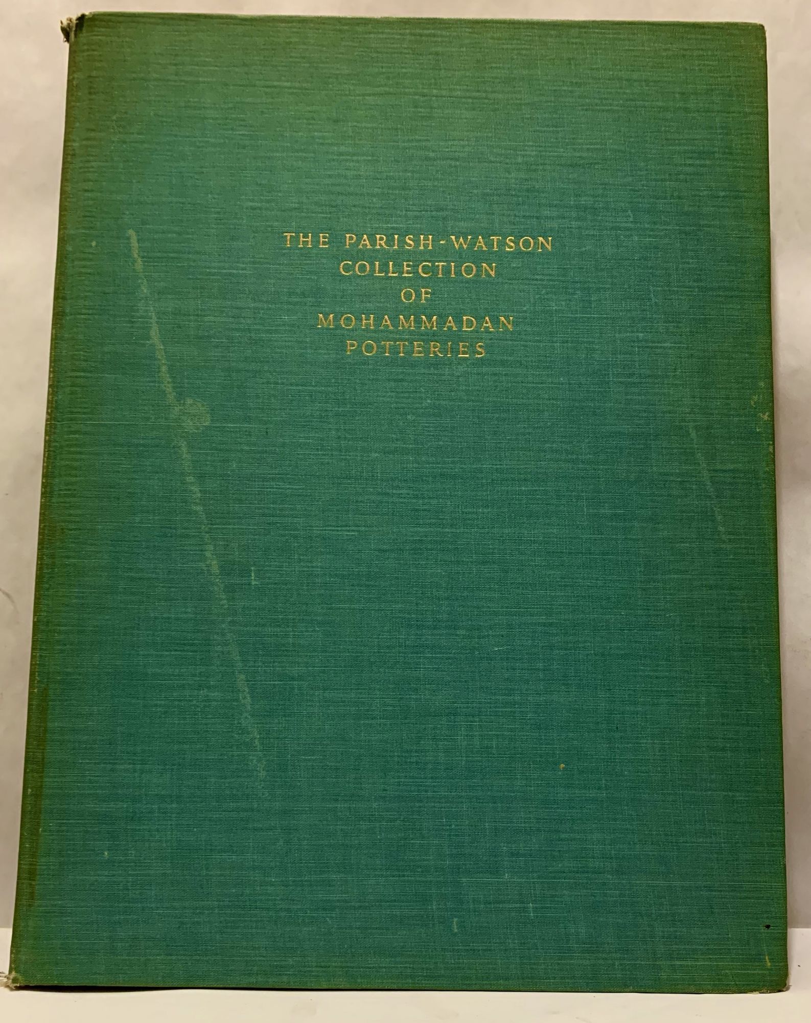New York: E. Weyhe, 1922. First edition. Hardcover. Orig. green cloth. Very good. 259 pages. Folio, 38 x 29 cm. 94 plates. Limited edition, copy 261 of 500. All descriptive lettered tissue guards present. The author states, " The genesis of Mohammadan art is psychologically one of the most interesting chapters in the history of art." Ceramics presented are from the 12th to 14th centuries. Bibliography. Index. Interior contents clean, backstrip extremities and lower corners worn.