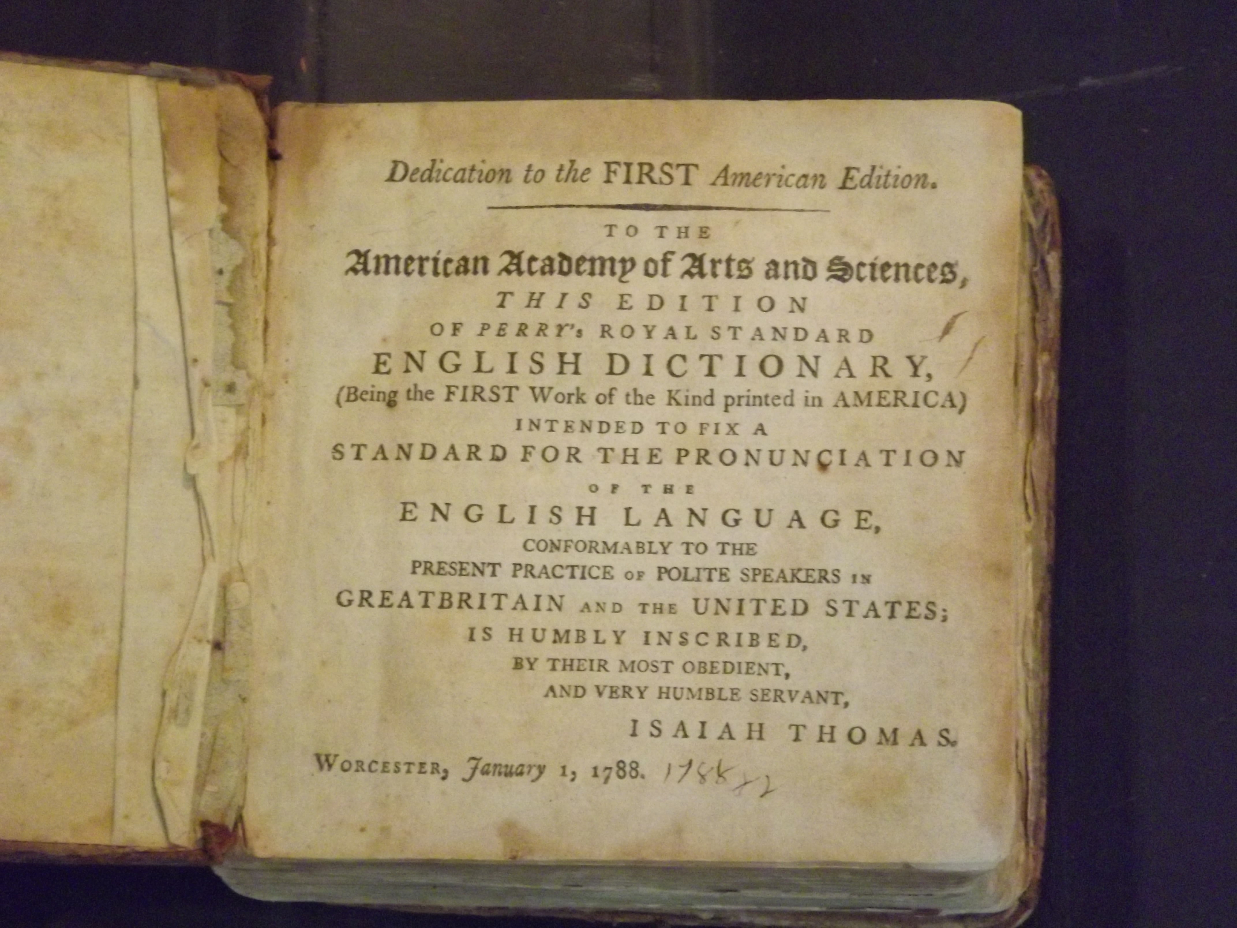 Isaiah Thomas's dedication to the American Academy of Arts and Sciences in the first American edition of 1788 (reprinted in this volume) identifies the work as "being the first work of the kind printed in America." The book includes a section on correct spelling and grammar in addition to the dictionary. Evans 2185.