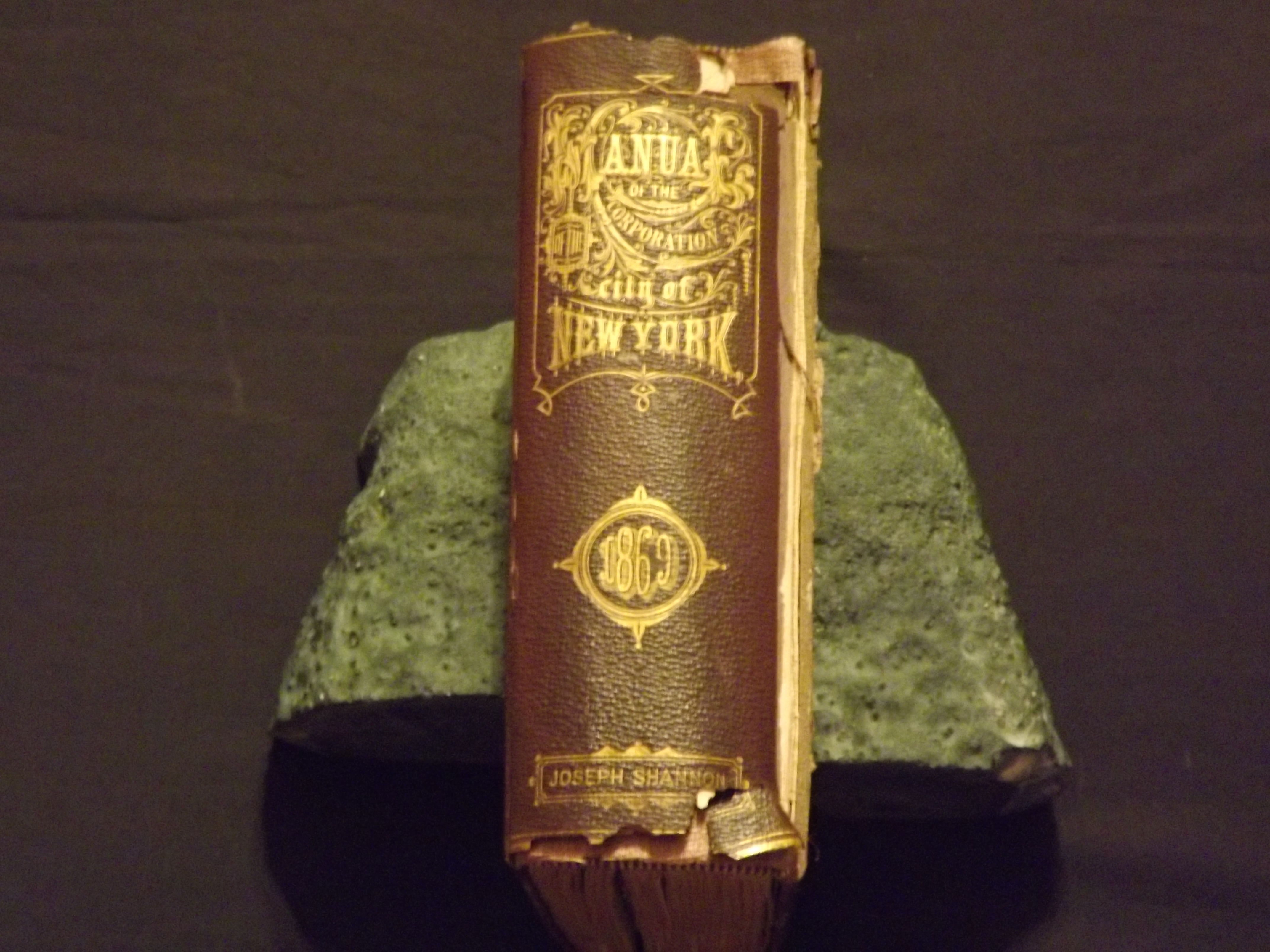 Valentine Manuals are considered the best source material on New York City History. They are abundantly illustrated with color plates maps and documents. First published by David Valentine in 1841, he continued to be the editor until 1867, when Joseph Shannon took over the job. This volume contains some very good material and plates including a tinted view of Central Park, a map of old New York in 1778. Additionally, the large folding map of the city is present. there is also a folding plate illustrating a birds eye view of New York.
