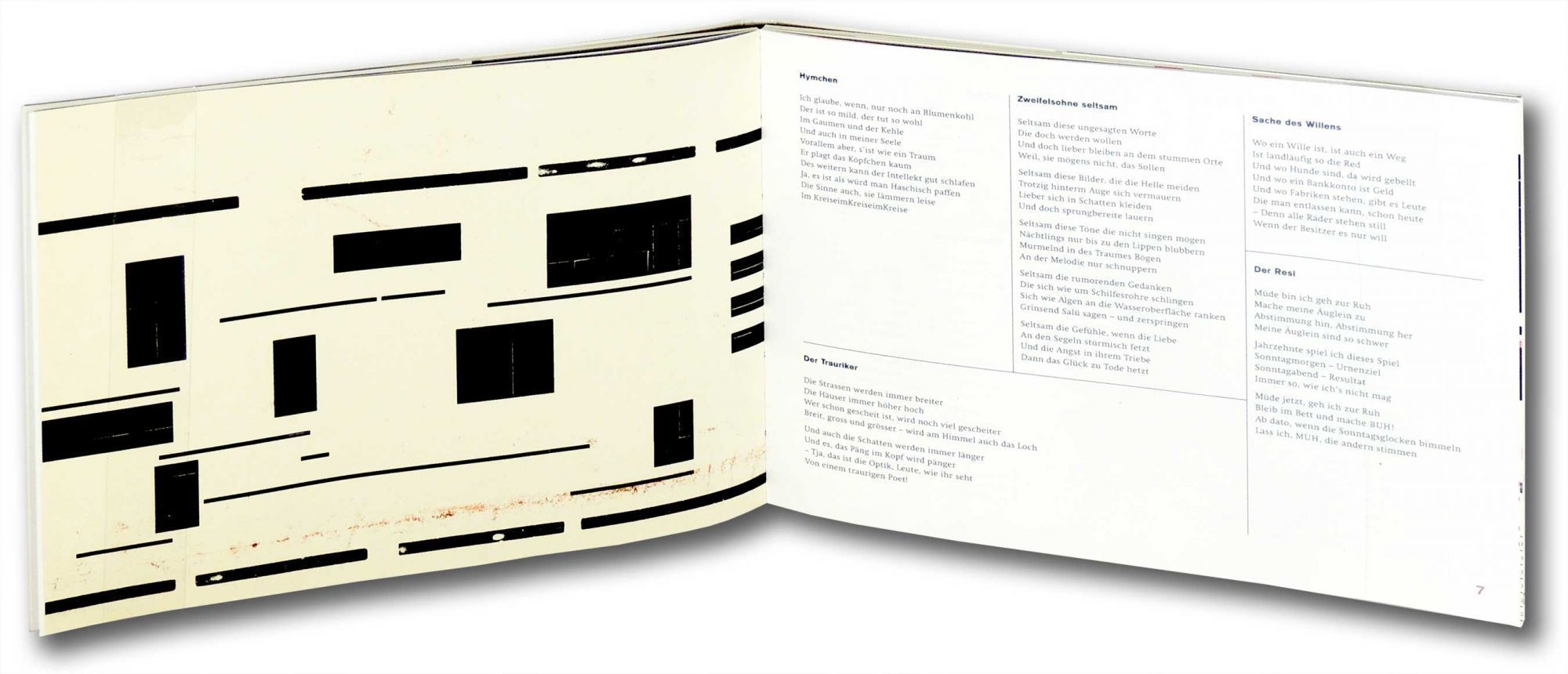 Basel, Switzerland: Romano Hänni, 2005. Hard Cover. Fine. Hard Cover. Number 34 of 40. Each book is unique. Second Edition. This book includes a selection of proof pages from various early handprinted books by Romano. The pages include handwritten notes and marks for corrections. Because each proof sheet is different, each illustration and also each book is unique. The poems, which are interspersed with the proof sheets, are written by Romano's father. The typographic pictures and cover are letterpress printed and the poems are inkjet printed. The text is in German with no English translation. (56 pages) ARTB/011713.