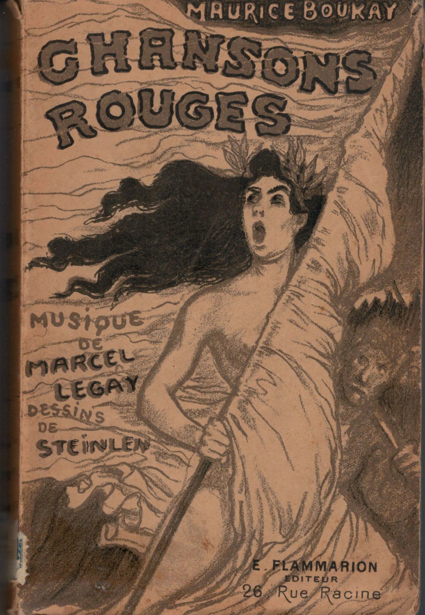 Paris: Ernest Flammarion, 1896. First edition. Original Wraps. Orig. illustrated wrappers. Very good. Steinlen. 260 pages. 18. 5 x 11.5. Cover illustration by Steinlen, host of black and white illustration hors texte by Steinlen. Music by Marcel Legay. Text browned. Modest extremity wear.