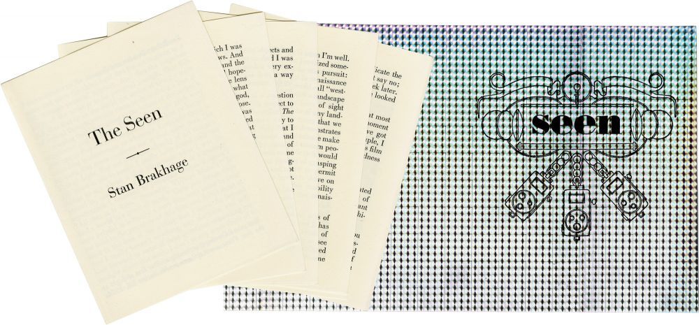 "Upon reviewing the tape to proof-read his first galley, Teter found that the Cinematheque transcriber had edited rather wildly, leaving out chunks and had even interpolated parts from another Brakhage speech at the University of California Berkeley's Pacific Film Archive. Teter re-transcribed the speech, and "The Seen" first appeared in print in late 1975."