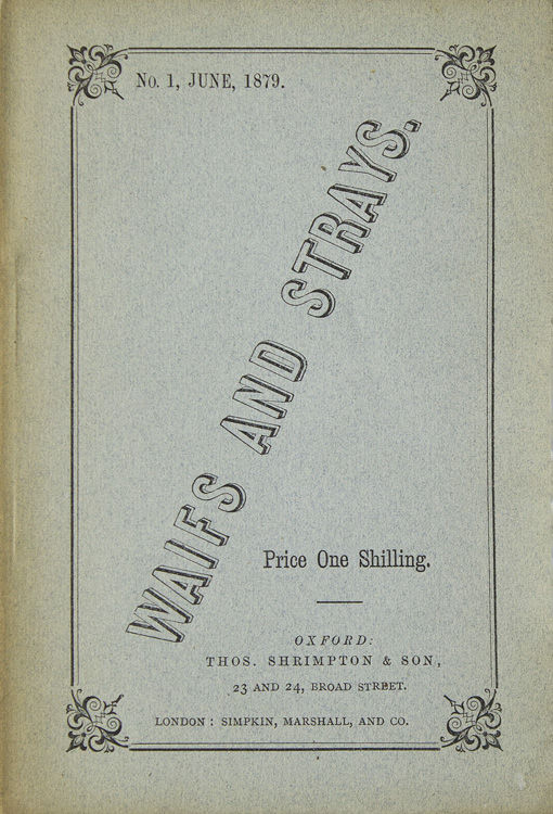 - P. 2, in WAIFS AND STRAYS. A TERMINAL MAGAZINE OF OXFORD POETRY, Vol. I, No. 1, June, 1879. 1 vols