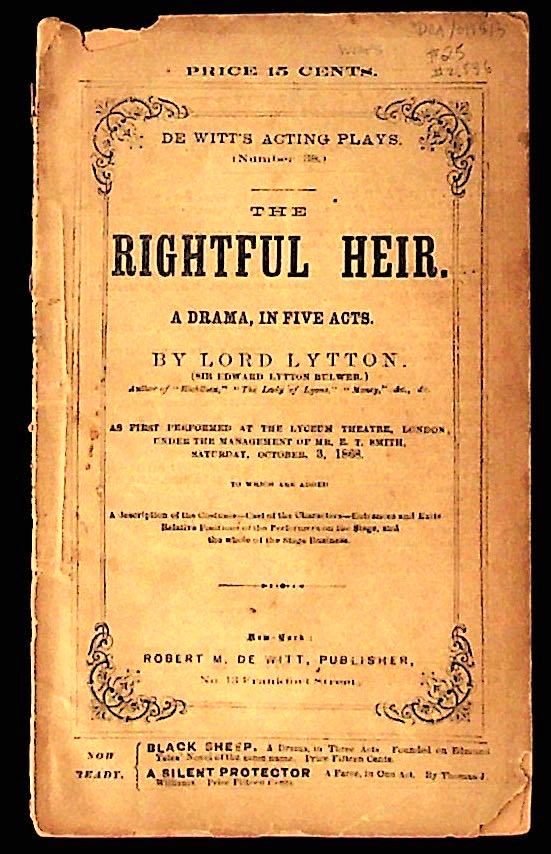 New York: Robert M. de Witt, 1868. Paperback. Very Good. Paperback. Very good in beige paper wrappers with black title to front cover. There are a few large chips to the edges of all pages of this pamphlet but the text is not effected. Browning throughout and light marking to front cover, else clean. 50 pages. DRA/011513.