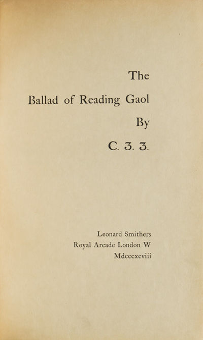 London, 1898. First edition, ONE OF 30 COPIES on Japanese vellum. 1 vols. 8vo. Cinnamon-colored cloth, vellum spine. Covers show slight insect damage and minor soiling, spine a bit soiled, otherwise a very good copy in a quarter blue morocco slipcase with chemise and with the bookplate and signature of actress LENA ASHWELL (1872-1957) on the front pastedown. First edition, ONE OF 30 COPIES on Japanese vellum. 1 vols. 8vo. First edition of Wilde’s legendary poem, written while he was imprisoned, in its rarest state — being one of only 30 copies printed on Japanese vellum.