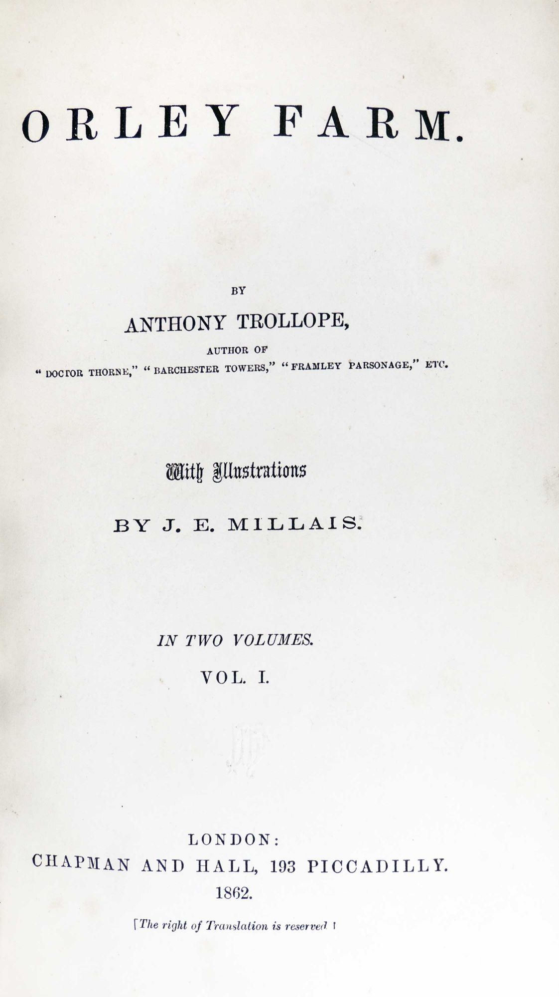 London: Chapman and Hall, 1862. Hardcover. Very Good. Millais, J.E.. Millais, J.E. Hardcover. First edition in book form. Illustrated by the Pre-Raphaelite artist, John Everett Millais (1829 - 1896). Includes 40 illustrations. In original brown publishers cloth with blind stamped designs to boards and decorated gilt titles to spines. Both volumes have been expertly rebacked with new material showing along the spine ends and hinges of both spines. Modern endpapers. Wear to the edges and corners of both volumes with fraying and chipping along the edges of the remnants of the original spines. Minor foxing to plates and to pages facing the plates including the title page; the rest of the interior is clean. 320 pages in volume one; 384 pages in volume two. LIT/032713.