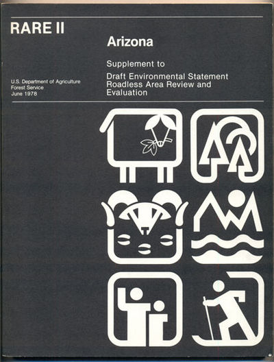 U.S. Department of Agriculture Forest Service June 1978, 1978. Paperback. 73; 29pp. Quarto [28 cm] Black and white printed wrappers. Very good. With the map in the rear pocket. USDA-FS-WO FY 78-04 DES Leg. From the title page- "This document is the Arizona State Supplement to the RARE II Draft Environmental Statement. It provides information on each roadless area in Arizona.