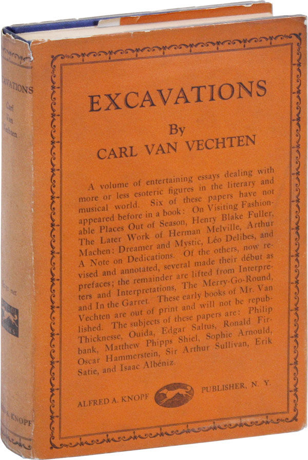 New York: Alfred A. Knopf, 1926. First Edition. First Printing. Octavo; blue cloth with titles stamped in gilt on spine; orange topstain; dustjacket; 284pp, [2]. Topstain faded and slightly dusty, with a touch of subtle fading to spine panel; Near Fine. Dustjacket (orange variant) is well-preserved for this title, lightly edgeworn, and a little sunned at spine; a strong, Very Good+ example. A volume of essays dealing with esoteric figures in the literary and music world, among them Herman Melville, Ouida, Oscar Hammerstein, and Ronald Firbank.
