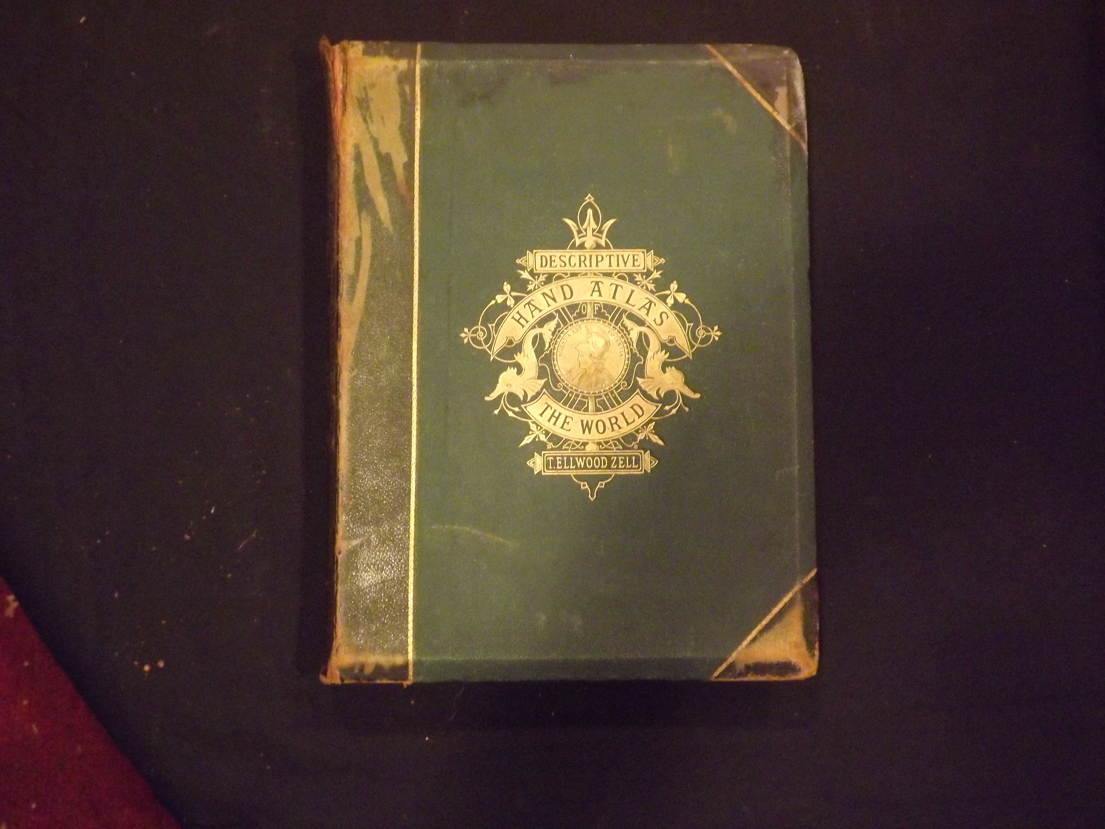 Small folio (13 1/4" x 10"), leather spine and corners with cloth, gilt title on top cover and spine, illustrated with 35 colored maps. Top cover and part of spine partially detached, wear and scuffing to spine and extremities, bookplate on front endpaper, endpapers are partially glued to pastedowns, slight aging and a little corner staining, but internally bright and clean. While Zell's maps don't have the decorative style of other map makers of this period, they are attractive and technically quite good. The double page map of the United States is nicely done.