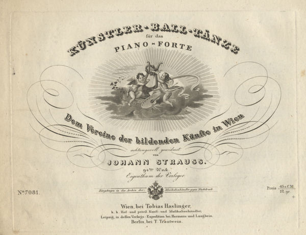 [Op. 94]. Künstler-Ball-Tänze für das Piano-Forte dem Vereine der bildenden Künste in Wien