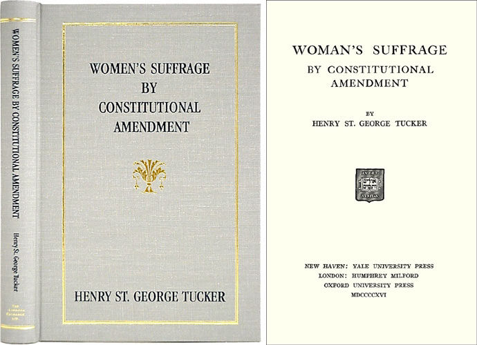 2003. ISBN-13: 9781584773429; ISBN-10: 1584773421. Tucker, Henry St. George. Woman's Suffrage by Constitutional Amendment. Originally published: New Haven: Yale University Press, 1916. x, 204 pp. Reprinted 2003 by The Lawbook Exchange, Ltd. ISBN-13: 9781584773429; ISBN-10: 1584773421. Hardcover. New. $27.95 * Tucker [1853-1932], the grandson and namesake of Henry St. George Tucker [1780-1848], was a Congressman from Virginia and an opponent of most social legislation. He argues that a Constitutional amendment providing for women's suffrage would violate the division between state and federal powers. According to Tucker, the right to vote is not a federal issue, but a local one. Reprint of the 1916 Yale University Storrs Lectures.
