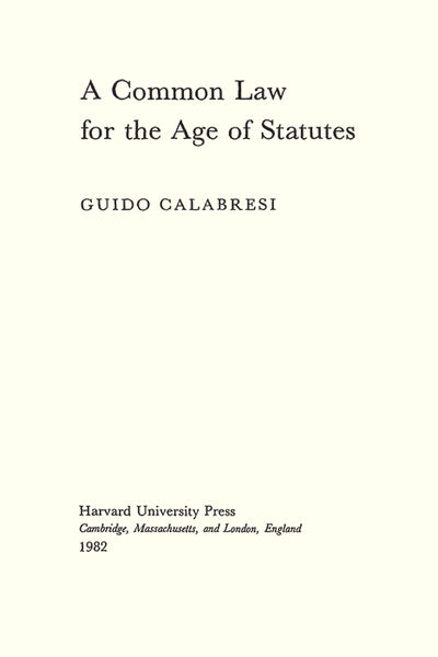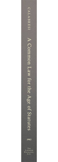 2015. ISBN-13: 9781584770404; ISBN-10: 1584770406. Calabresi, Guido. A Common Law for the Age of Statutes. Originally published: Cambridge: Harvard University Press, 1982. [x], 319 pp. Reprinted 2000, 2015 by The Lawbook Exchange, Ltd. ISBN-13: 9781584770404; ISBN-10: 1584770406. Hardcover. New. $50. * Calabresi complains that we are "choking on statutes" and proposes a restoration of the courts to their common law function. From a series of lectures given by Calabresi as part of The Oliver Wendell Holmes Lectures delivered at Harvard Law School in March 1977. "In his most recent publication, A Common Law for the Age of Statutes, based on the Oliver Wendell Holmes lectures he delivered at Harvard in March of 1977, Professor Calabresi has brought his ample juristic talents to bear on a foundational problem of the legal and democratic process. He has produced a monograph that in its quality, timeliness and provocativeness is likely to stand alongside the seminal works of Ronald Dworkin and Grant Gilmore." -- Allan C. Hutchinson and Derek Morgan, 82 Columbia Law Review 1752 1982 GUIDO CALABRESI [1932-] is Sterling Emeritus Professor of Law and Professorial Lecturer in Law at Yale Law School. He was Dean of Yale Law School from 1985-1994, and was appointed United States Circuit Judge in 1994. He is also the author of The Costs of Accidents (1970), Tragic Choices (1978) and Ideals, Beliefs, Attitudes, and the Law (1985).