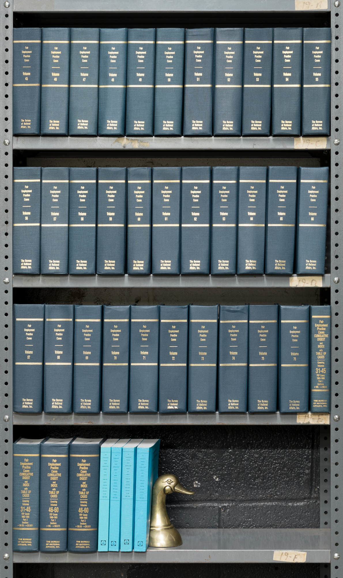 1998. Eight (8) linear feet of shelf space. Eight (8) linear feet of shelf space. Fair Employment Practices Cases. Washington: Bureau of National Affairs. Vols. 45 to 76 (1987-1998) [with] Cumulative Digest Index covering vols. 31-60 in 4 books. Together 36 books, blue cloth hardcover with gilt stamped spines [with] Cumulative Index in four softbound vols. 61-72 in 4 softbound vols. Eight (8) linear feet of shelf space. Ex-library with property stamps, else very good. Special $150. * Contains decisions under federal, state and municipal FEP laws and orders, as well as federal and state regulations, statutes and administrative rulings.