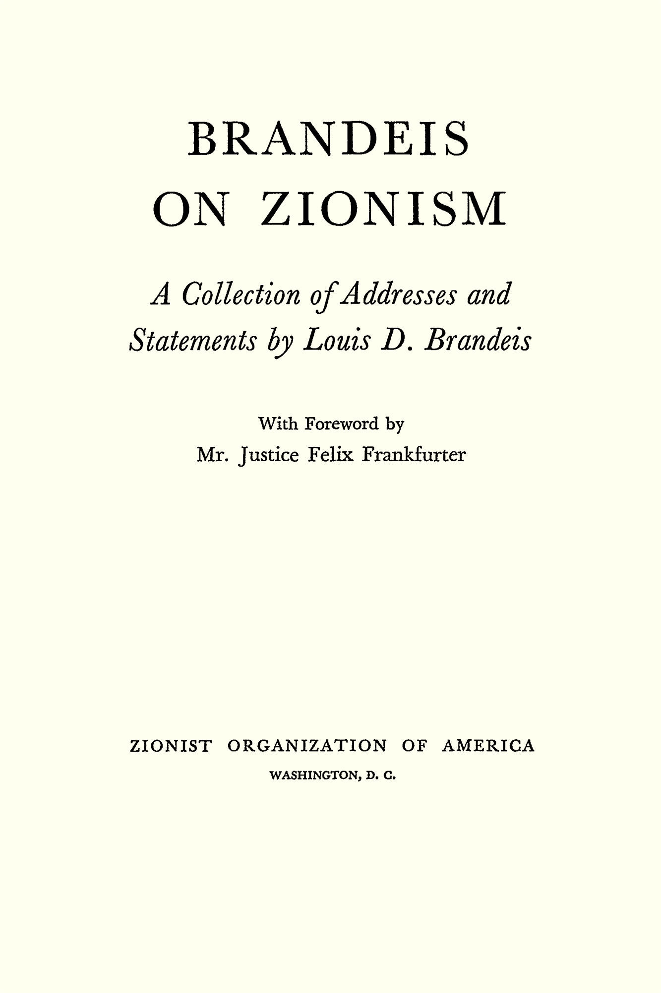 Brandeis on Zionism: A Collection of Addresses and Statements..