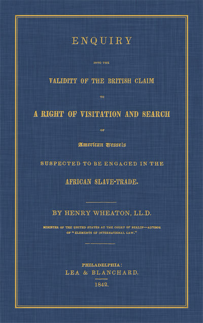 2015. ISBN-13: 9781584774075; ISBN-10: 158477407X. Wheaton, Henry. Enquiry Into the Validity of the British Claim to a Right of Visitation and Search of American Vessels Suspected to be Engaged in the African Slave-Trade. Originally published: Philadelphia: Lea & Blanchard, 1842. 151 pp. Reprinted 2004, 2015 by The Lawbook Exchange, Ltd. ISBN-13: 9781584774075. ISBN-10: 158477407X. Hardcover. New. $29.95 * Reprint of the first edition. Wheaton [1785-1848] was a distinguished attorney and diplomat. His Elements of International Law (1836) established him as America's foremost authority on that subject. Published simultaneously in the United States and Great Britain, Enquiry criticizes Britain's seizure of American vessels engaged in the Atlantic slave trade. Although the importation of slaves was prohibited by law at this time, Wheaton rejected the right of other nations to enforce this American law. Instead of serving the United States, he reasons, such actions are a violation of its sovereignty.