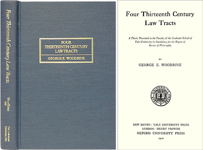 1999. ISBN-13: 9781584770077; ISBN-10: 1584770074. Woodbine, George E. Four Thirteenth Century Law Tracts. A Thesis Presented to the Faculty of the Graduate School of Yale University in Candidacy for the Degree of Doctor of Philosophy. Originally published: New Haven: Yale University Press, 1910. vi, 183 pp. Reprinted 1999 by The Lawbook Exchange, Ltd. ISBN-13: 9781584770077; ISBN-10: 1584770074. Hardcover. New. $20. * Following a detailed introduction in English, this important source contains four tracts in Law French, "the Fet Asaver, a tract on procedure probably by Hengham; the Cum sit necessarium or Modus Componendi Brevium, and the Exceptiones ad Cassandum Brevia, complementary tracts on writs." Holdsworth, Sources and Literature of English Law 34.