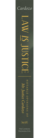 2014. ISBN-13: 9781584770107; ISBN-10: 1584770104. Cardozo, Benjamin N. Law is Justice. Notable Opinions of Mr. Justice Cardozo. Foreword by Robert F. Wagner. Edited by A.L. Sainer. Originally published: New York: Ad Press Ltd., [1938]. xvii, 441 pp. Frontispiece. Reprinted 1999, 2014 by The Lawbook Exchange, Ltd. ISBN-13: 9781584770107; ISBN-10: 1584770104. Hardcover. New. $42.95 * A collection of notable opinions by the great judge in the areas of civil rights, crime, contractual relations, injuries, estates, labor and social matters, and international relations. Cardozo's opinions bear the mark of careful preparation, of patient and laborious research, of a profound understanding of legal principles and their present ethical, social and economic setting. Each opinion is accompanied by an introduction that explains the background and legal substance of the case. BENJAMIN N. CARDOZO [1870-1938] an Associate Justice of the Supreme Court, was one of the most influential American jurists of the twentieth century. He is the author of The Nature of the Judicial Process (1921), The Paradoxes of Legal Science (1928) and What Medicine Can Do For Law (1930).