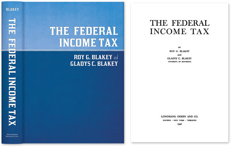 2010. ISBN-13: 9781584776468; ISBN-10: 1584776463. Blakey, Roy G., and Gladys McAlpine Campbell Blakey. The Federal Income Tax. Originally published: London: Longmans, Green and Co., 1940. xvii, [2] 640 pp. Tables. Diagrams (one fold-out). Reprinted 2006, 2010 by The Lawbook Exchange, Ltd. ISBN-13: 9781584776468; ISBN-10: 1584776463. Hardcover. New. $69.95 * This was the first book to put the American federal income tax into its historical and political context. Acclaimed upon publication as a necessary supplement to the work of Seligman and Seidman, it is still an essential work. Erwin R. Griswald was among the first to recognize this book's value. In the Harvard Law Review he wrote "[t]here is very little in this book that will help a lawyer win a case...[y]et there is much of practical value, a clear picture of the forest which might otherwise escape the lawyer bent on dissecting the trees." He predicted correctly that "[t]here is a mass of fact and comment that will make the book a standard work of reference for many a year to come" (53:1218).
