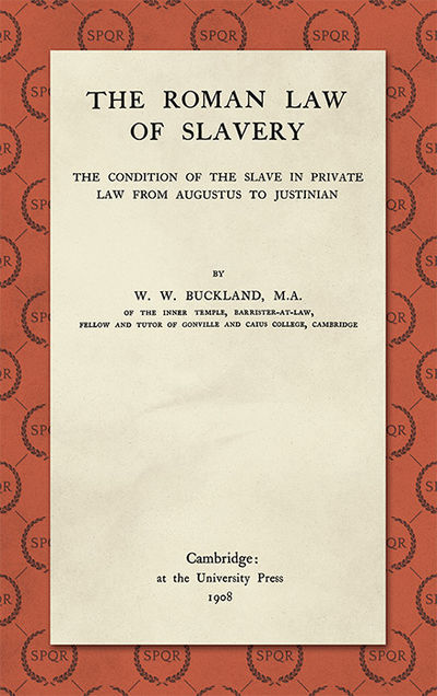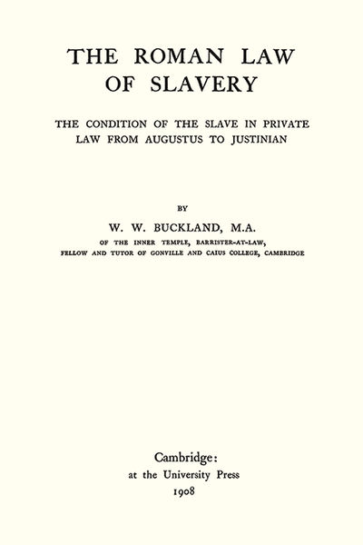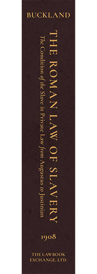 2018. ISBN-13: 9781584770688; ISBN-10: 1584770686. Buckland, W.W. The Roman Law of Slavery: The Condition of the Slave in Private Law from Augustus to Justinian. Originally published: Cambridge: Cambridge University Press, 1908. xii, [2], 735 pp. Reprinted 2001, 2018 by The Lawbook Exchange, Ltd. ISBN-13: 9781584770688. ISBN-10: 1584770686. Hardcover. New. $59.95 * With appendices and a thorough index. A systematic and scholarly description of the principles of the Roman law regarding slavery. "So great is the care, skill and accuracy with which his object has been carried out we think it will be long before any other writer either at home or abroad attempts to produce a rival work on this branch of law.": S.H.L., Law Quarterly Review 25 (1909):85-86.